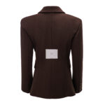 Taliowany krój marynarki został zaprojektowany tak, aby modelować sylwetkę.