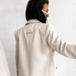 Na plecach umieszczono subtelne, złote logo OLAVOGA, które stanowi biżuteryjny akcent i podkreśla prestiżowy charakter produktu. Boczne kieszenie dodają funkcjonalności, nie zaburzając minimalistycznej estetyki. To płaszcz, który doskonale sprawdzi się w nowoczesnych, miejskich stylizacjach, podkreślając kobiecą pewność siebie.