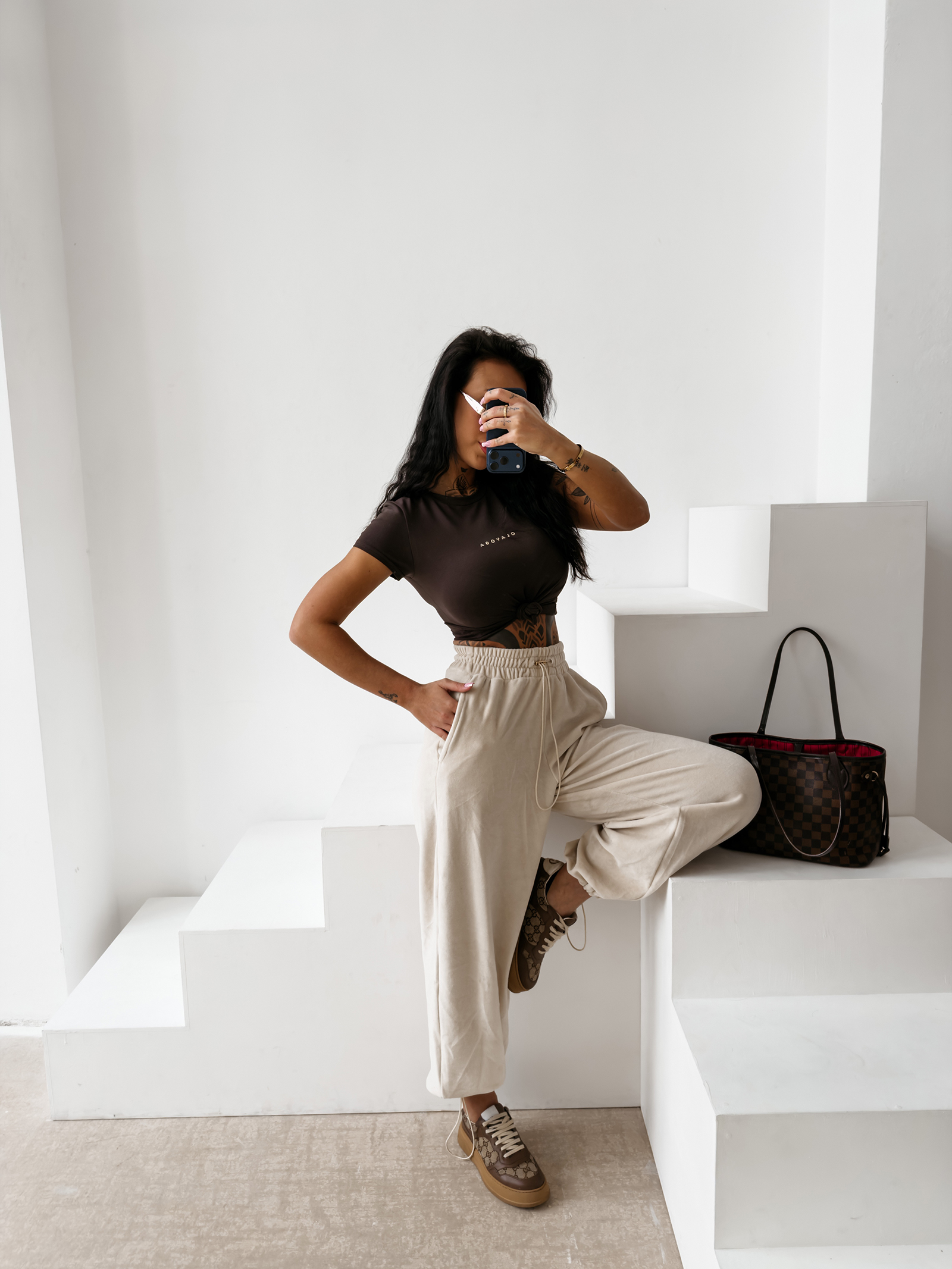 T-shirt damski OLAVOGA LIVA brązowy