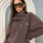 Z przodu bluza posiada dekolt zapinany na cztery złote napy, które tworzą efektowną stójkę. Ten detal dodaje całości subtelnej elegancji i sprawia, że klasyczna polarowa bluza zyskuje bardziej dopracowany, designerski charakter. Stójka pozwala regulować stopień zabudowania dekoltu, zapewniając dodatkową ochronę przed chłodem.