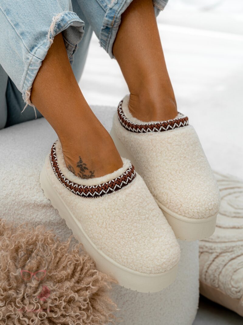 Ocieplane botki Madam Solp z zakrytymi palcami i barankiem to oryginalne połączenie wygody i stylu na chłodniejsze dni. Wyróżniają się efektownym wykończeniem z miękkiego materiału imitującego baranka z zewnątrz i przyjemnego futerka wewnątrz, który otula stopę, zapewniając ciepło i komfort. Ich odkryty fason dodaje lekkości, idealnie balansując pomiędzy swobodą a ciepłem. Te śniegowce świetnie komponują się z różnymi stylizacjami. Wygodna podeszwa i starannie zaprojektowany kształt gwarantują wygodę noszenia przez cały dzień. Botki Madam Solp to doskonały wybór na jesienne i zimowe dni!
