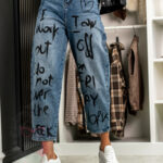 Postaw na jeansy, które łączą modny fason z odważnym charakterem. Spodnie jeansowe baggy z napisami Xtro granatowe Wide balloon w ciemnoniebieskim odcieniu z efektem dekatyzacji to model, który wyróżnia się nowoczesnym krojem i wygodą noszenia. Wysoki stan podkreśla sylwetkę, a szeroka nogawka nadaje stylizacji lekkości i luzu. Gładki tył zachowuje klasyczny wygląd, natomiast przód ozdobiono wyrazistymi napisami „I Work but I do over the week” oraz „I am off on friday work”, które dodają całości streetwearowego, nieco przewrotnego charakteru. To spodnie dla osób, które chcą wyróżniać się w tłumie i bawić się modą na własnych zasadach.