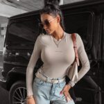 Bluzka Roxanna Ola Voga to niezwykle klasyczny i uniwersalny top, który doskonale sprawdzi się w każdej sytuacji. Wykonany z wysokiej jakości miękkiej bawełny, zapewnia przyjemność noszenia i komfort przez cały dzień. Prosty, ale jednocześnie elegancki fason idealnie podkreśli Twoją sylwetkę, dodając Ci pewności siebie i stylu. Bluzka jest wyposażona w długi rękaw, co stanowi doskonałą ochronę przed chłodem i nadaje jej ponadczasowy charakter. Zabudowany dekolt zapewnia odpowiednią dawkę skromności, równocześnie eksponując delikatnie szyję. Na przodzie bluzki umieszczony został złoty nadruk logo, który subtelnie podkreśla prestiż i wysoką jakość marki!