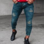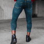 Spodnie męskie Erin od marki Ola Voga to stylowe i modnie wykonane z wysokopółkowego jeansu o kroju slim fit. Ich charakterystyczną cechą jest zwężana ku dołowi nogawka, która nadaje im nowoczesny wygląd. Wykonane z wysokiej jakości, elastycznej bawełny, zapewniają one pełną swobodę ruchów i komfort noszenia. Dodatkowo, spodnie zostały ozdobione licznie wykonanymi przetarciami, które nadają im oryginalnego charakteru. To doskonały wybór dla mężczyzn, którzy cenią sobie modny wygląd i wygodę w jednym.