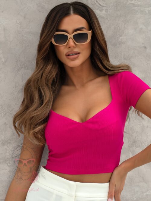 Klasyczny, basicowy top Kodar to krótki model, idealny na codziennych stylizacji. Wykonany jest z wysokogatunkowego materiału o prążkowanym wykończeniu, co dodaje mu dodatkowego uroku i tekstury. Top ma krótki rękaw, który zapewnia swobodę ruchu i wygodę. Mocno wycięty dekolt nadaje mu subtelny i kobiecy akcent, dodając charakteru i wyrafinowania.To niezawodny element garderoby, który można łatwo zestawić z innymi częściami garderoby!