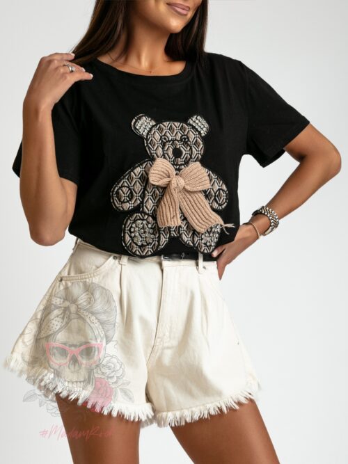 Koszula nocna wykonana z delikatnego siateczkowego materiału o długości mini. Halka na cienkie, dodatkowo profilowane biust ramiączka z koronkowymi miseczkami. Model z tyłu zapinany na haftki. W zestawie dołączone czarne stringi widoczne na zdjęciu.