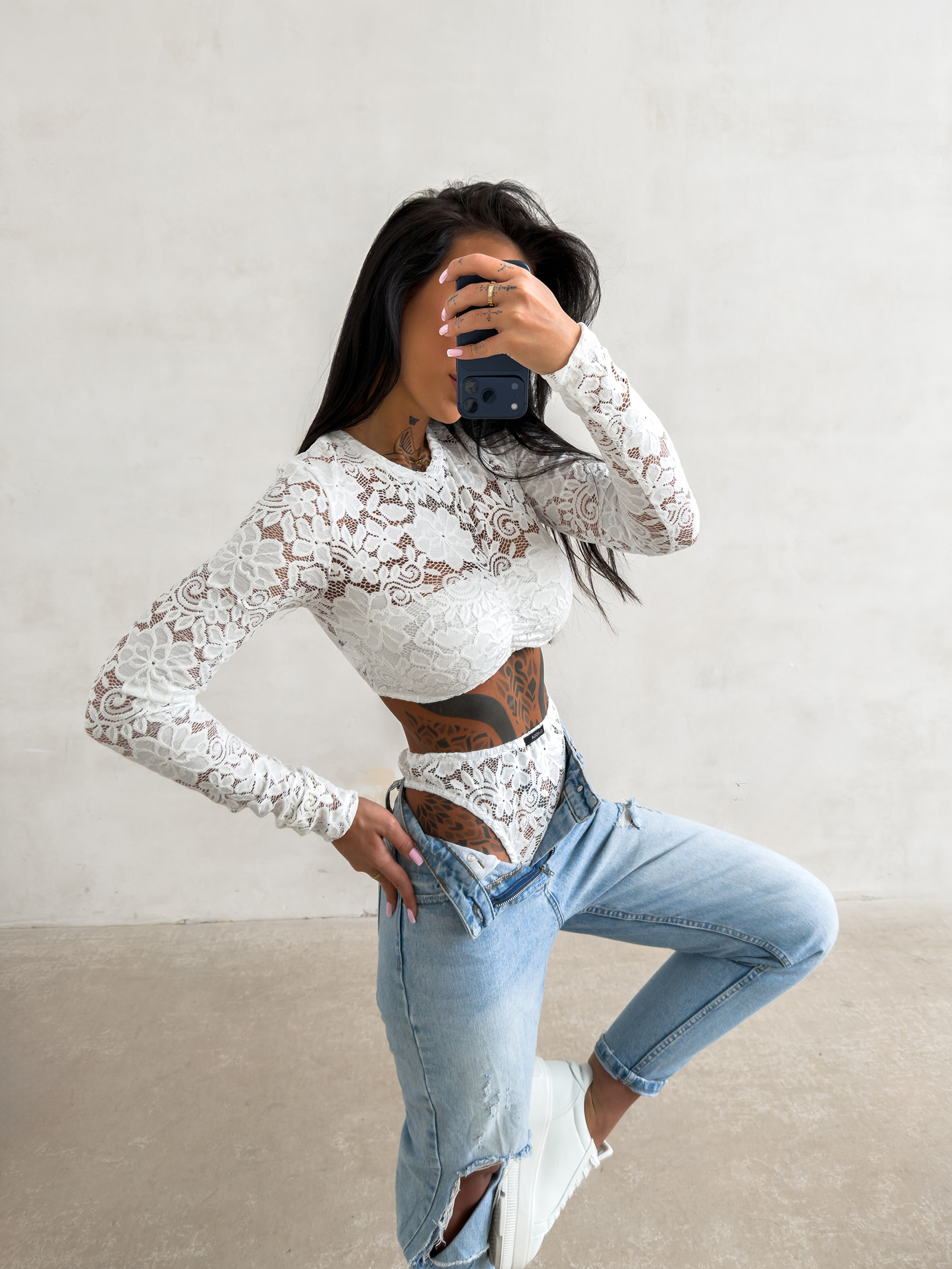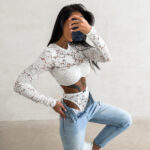 - Unikalny krój topu z długim rękawem pozwala na wykorzystanie go w odważnych stylizacjach codziennych.