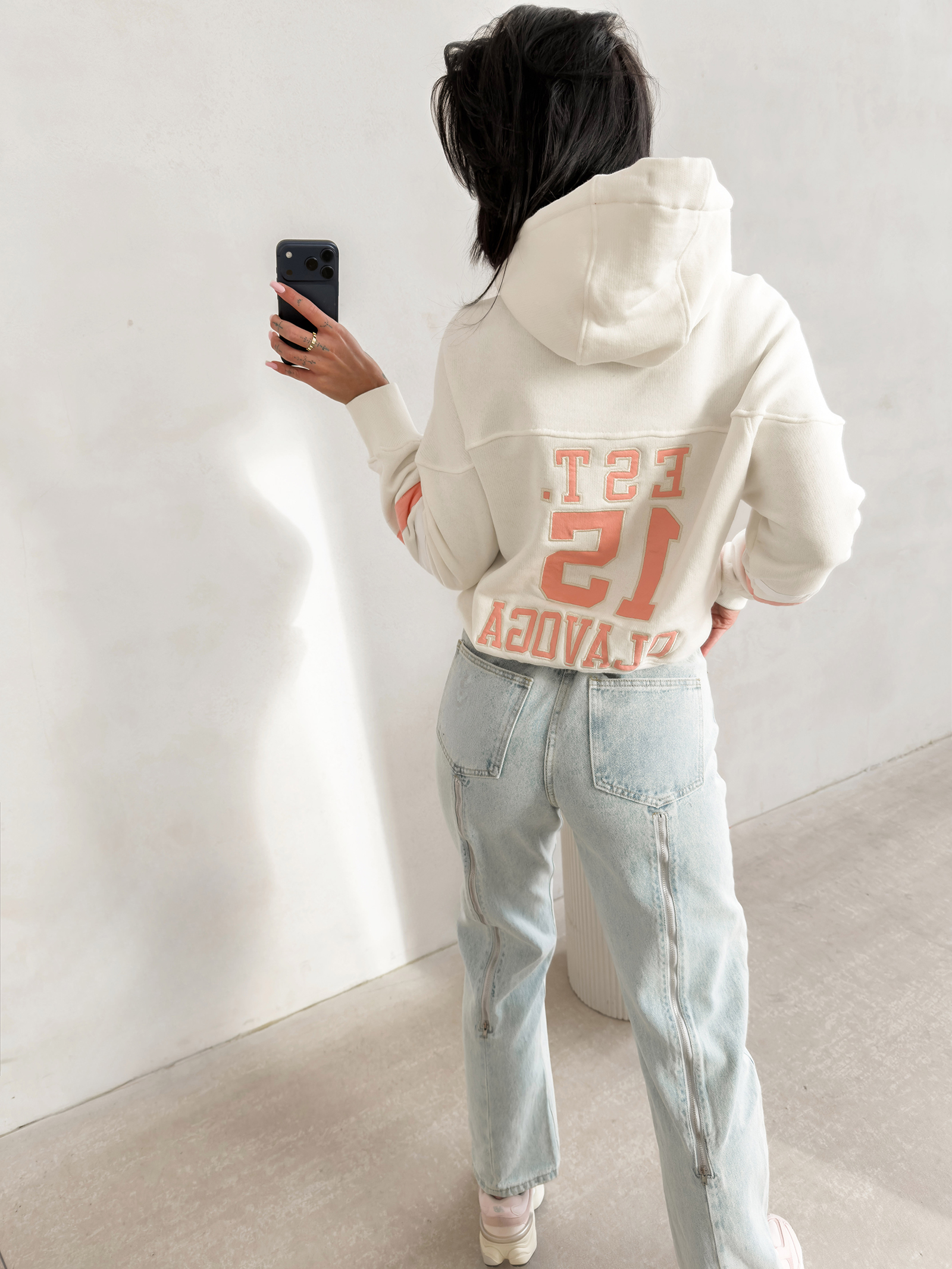 W modelu GRAPE każdy detal ma znaczenie. Oprócz dużych naszywek, na przodzie znajdziemy minimalistyczną, logowaną aplikację, która jest znakiem rozpoznawczym marki OLAVOGA. Przeszycia poprowadzone w strategicznych miejscach nie tylko wzmacniają materiał, ale również nadają bluzie unikalną strukturę. Dzięki starannemu wykończeniu wnętrza oraz dbałości o jakość szwów, bluza ta przetrwa próbę czasu i wielokrotne pranie, nie tracąc swojej intensywności kolorów ani pierwotnego kształtu. To produkt stworzony dla wymagających klientek, które cenią sobie polską produkcję i dbałość o detale premium.