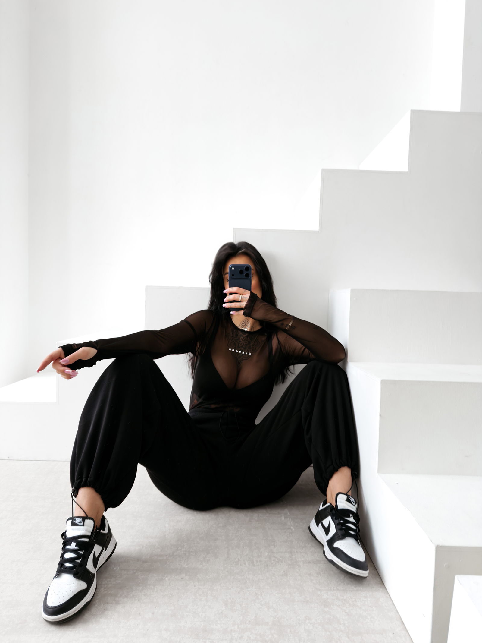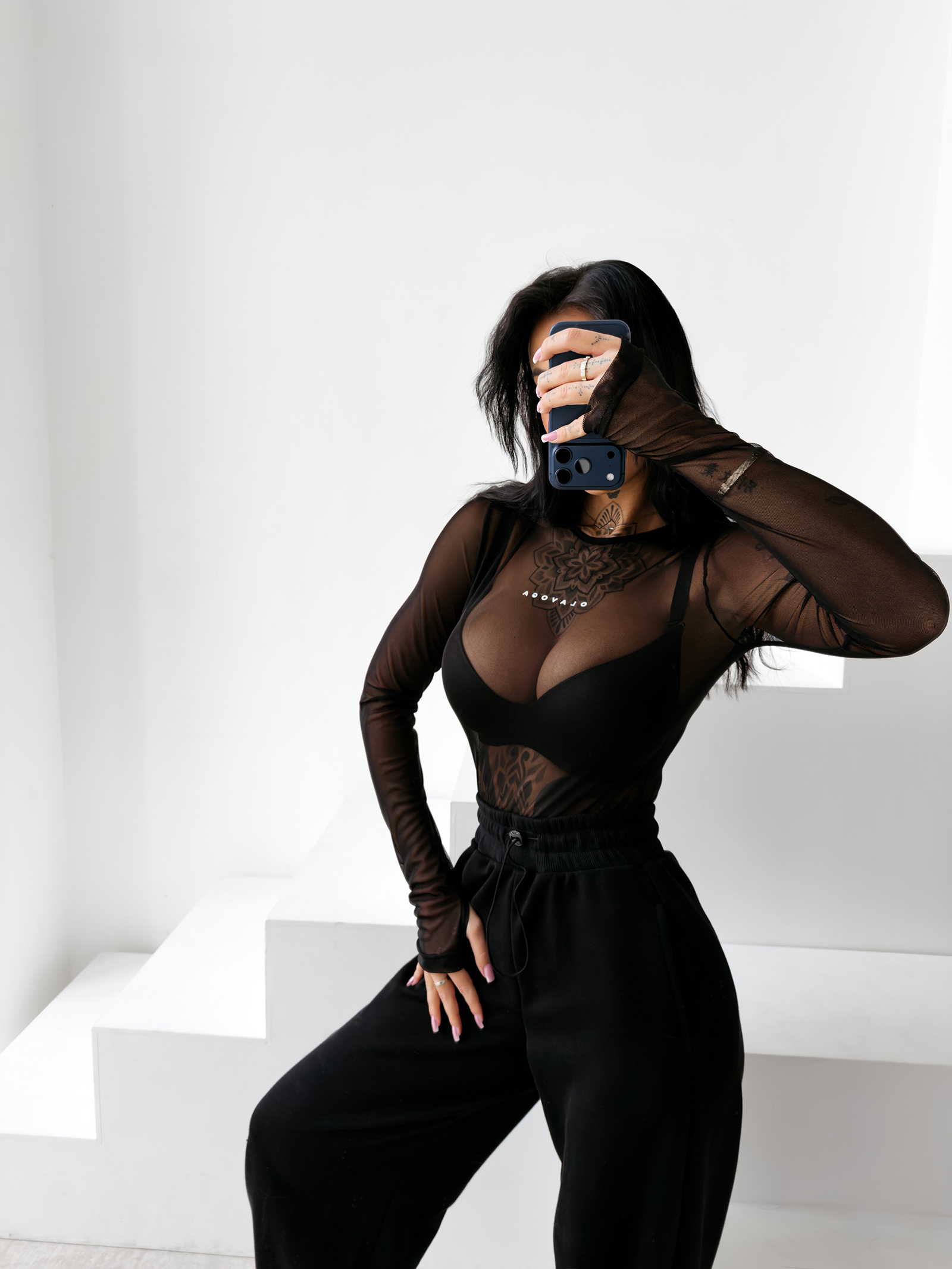 W projekcie body AMELI każdy detal został dopracowany tak, aby łączyć estetykę z najwyższym komfortem. Zastosowana siateczka jest wytrzymała i miła w dotyku, co odróżnia ją od standardowych tkanin tego typu. Zapięcie w kroku oraz starannie wykończony dekolt dbają o funkcjonalność i estetykę modelu. Długi rękaw z wycięciem na kciuk to ukłon w stronę trendów streetwearowych, który w połączeniu z elegancką siateczką tworzy produkt unikatowy, idealnie wpisujący się w filozofię marki – łączenie sportowego sznytu z luksusową elegancją.