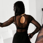 Zmysłowe body damskie OLAVOGA AMELI z efektownym wycięciem