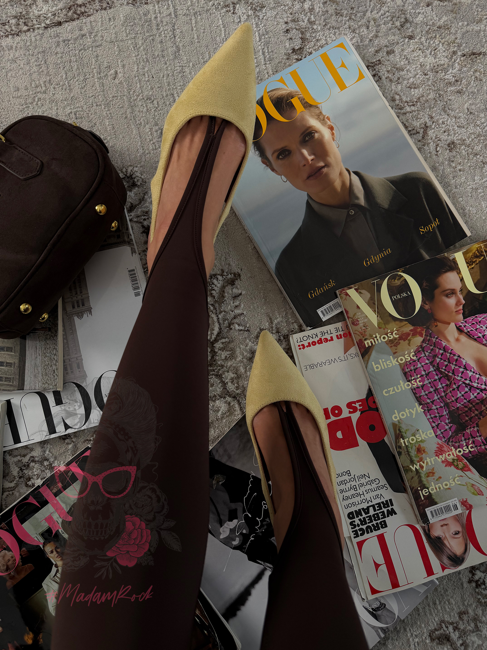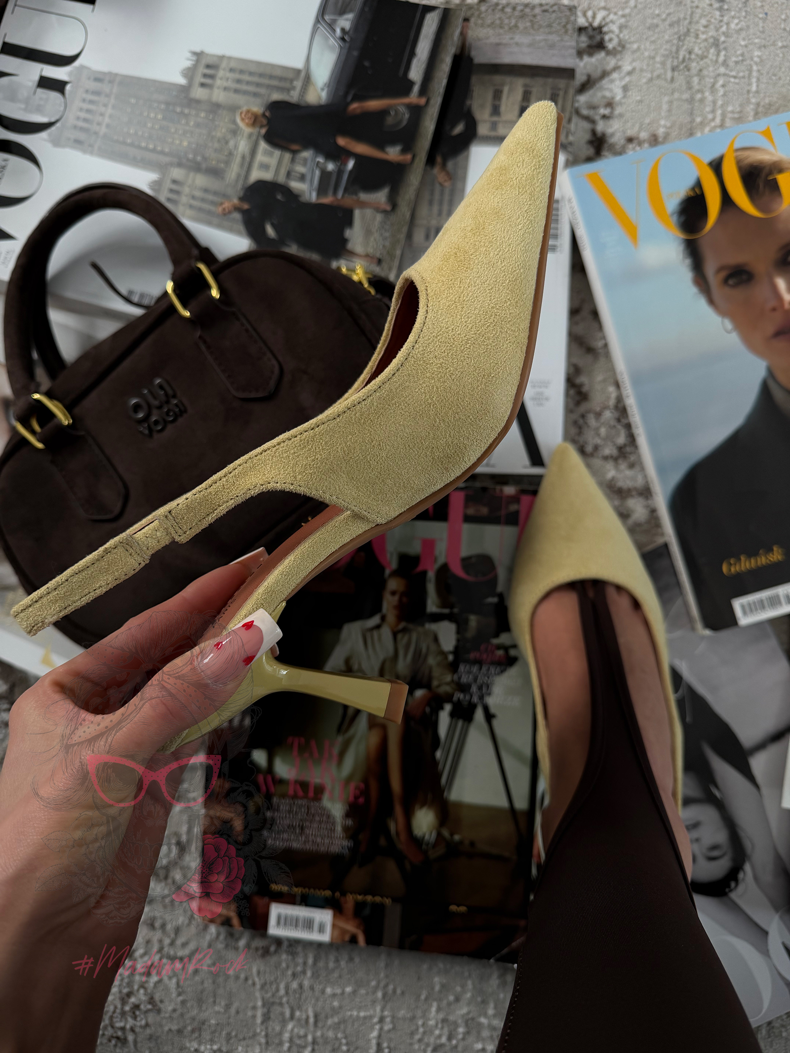Czółenka osadzone są na niskiej, wygodnej szpilce, dzięki czemu świetnie sprawdzą się nawet podczas długiego dnia. Obcas subtelnie podkreśla sylwetkę, nie rezygnując z komfortu użytkowania.