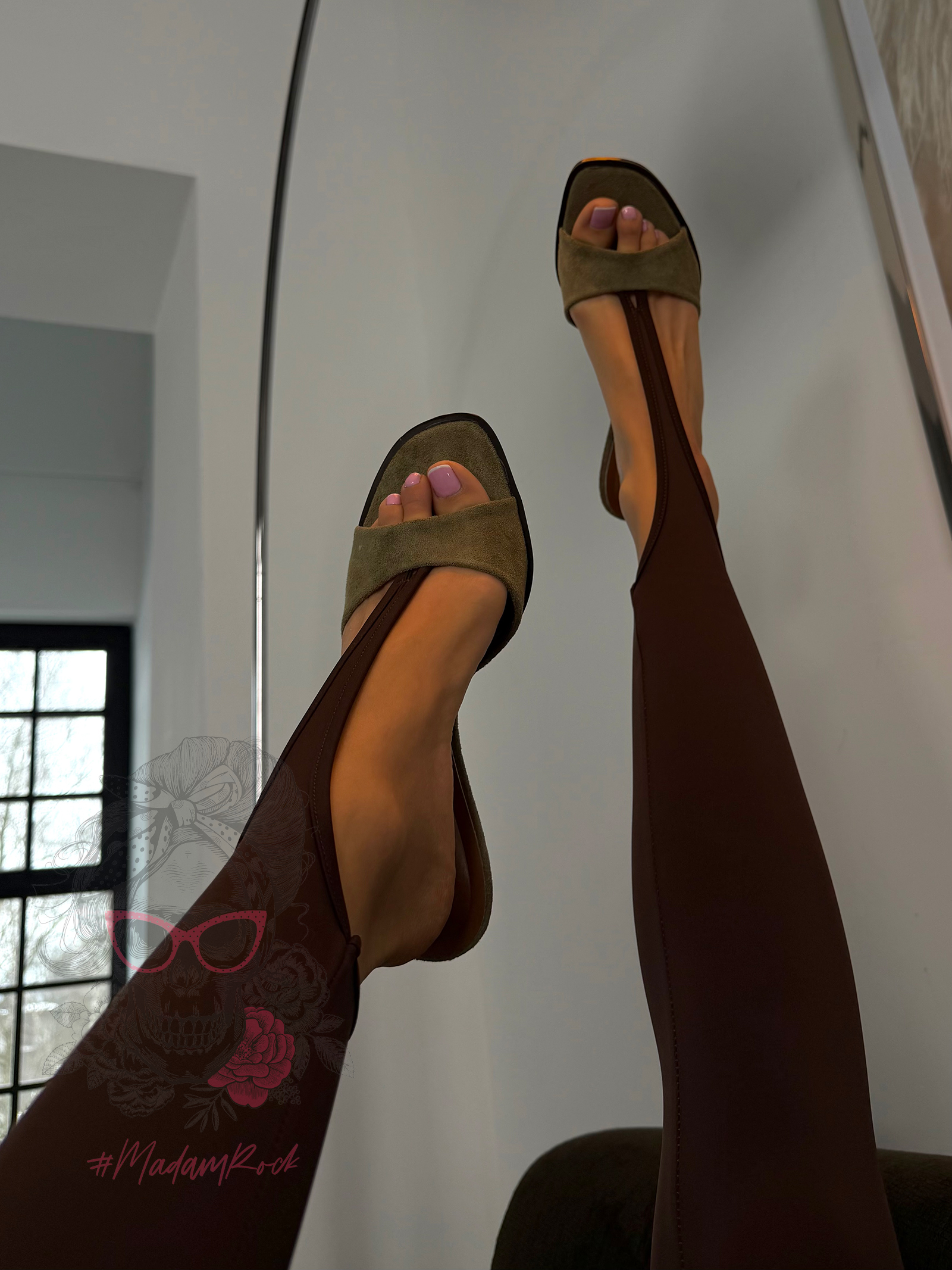 Buty osadzone są na szpilce o komfortowej, niezbyt wysokiej wysokości, która subtelnie wysmukla sylwetkę, jednocześnie zapewniając wygodę noszenia. Kwadratowy czubek nadaje klapkom nowoczesnego charakteru i wpisuje się w aktualne trendy, zachowując przy tym klasyczny styl.