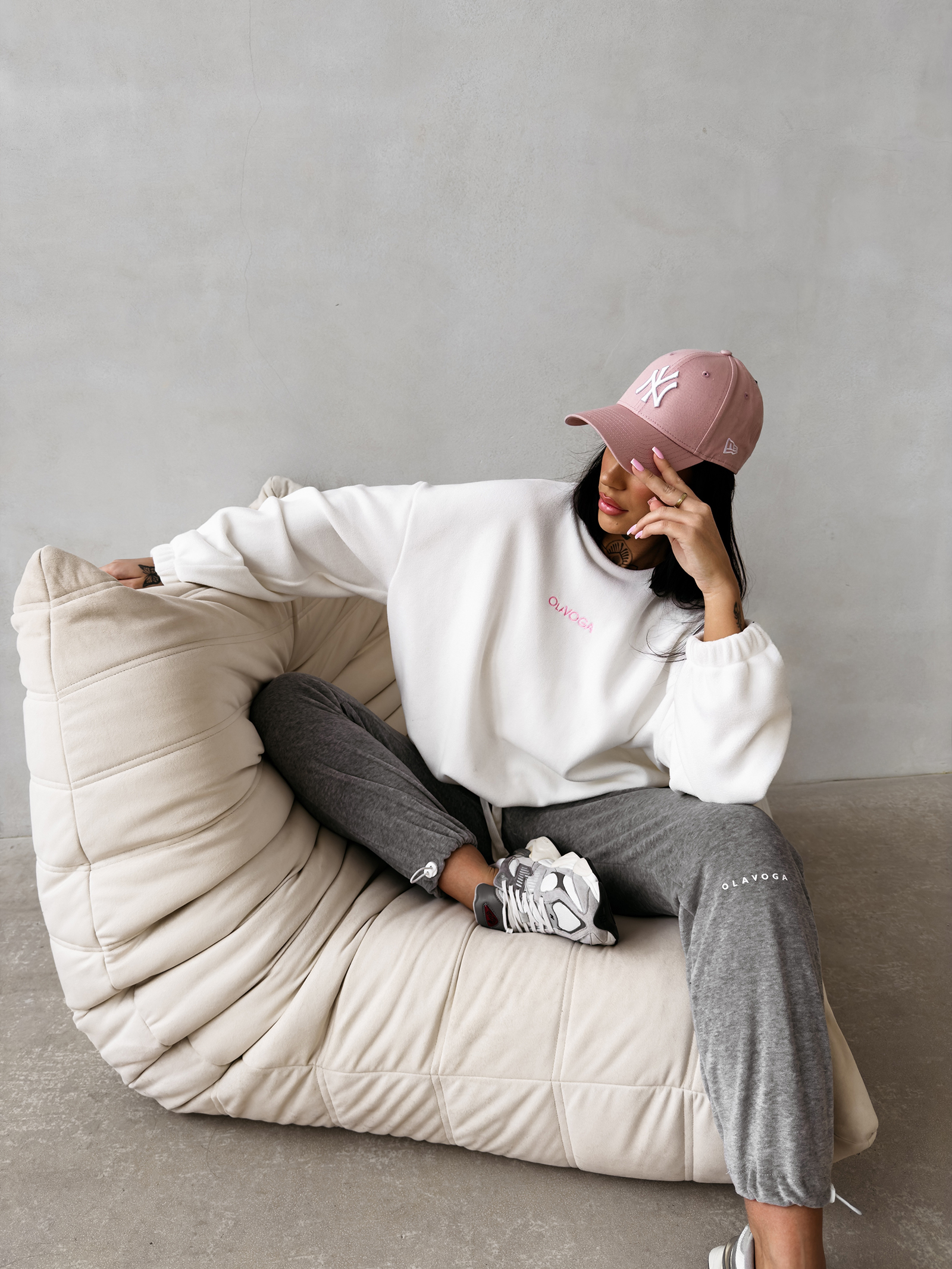 Przód zdobi delikatny haft – elegancki, dyskretny i bardzo stylowy. Prawdziwą uwagę przyciągają jednak plecy. Efektowne logo z hasłem „essence of comfort” podkreśla DNA marki i nadaje projektowi wyrazistości.