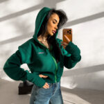 Bluza damska OLAVOGA LUMINK to propozycja dla kobiet, które oczekują połączenia nowoczesnego designu z dopracowaną funkcjonalnością. Model wykonano z miękkiej, elastycznej dzianiny o gładkiej, jednolitej strukturze, która estetycznie układa się na sylwetce i zapewnia wysoki komfort noszenia. Klasyczny krój z kapturem i zapięciem na suwak sprawia, że bluza idealnie wpisuje się w aktualne trendy miejskiej mody.