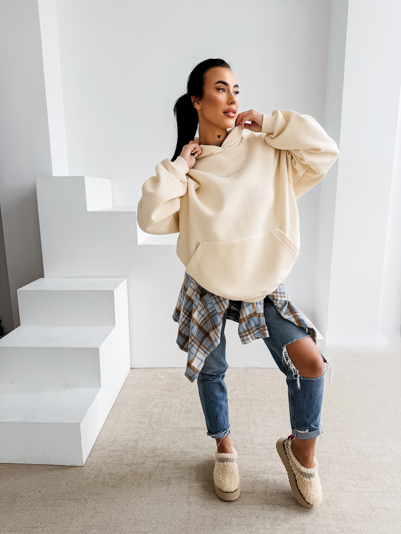 - oversize’owy krój gwarantujący wygodę i swobodę