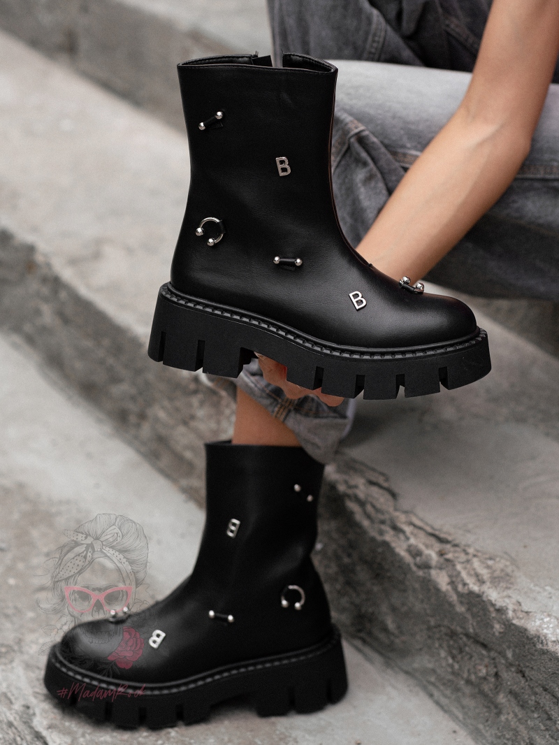 Botki Rock Pear II to jesienna propozycja, która łączy klasykę z wyrazistymi detalami. Wykonane z matowej ekoskóry, zachwycają minimalistyczną formą i solidnym wykończeniem. Wciągany fason został uzupełniony o praktyczny suwak po wewnętrznej stronie, co ułatwia zakładanie i zapewnia dobre dopasowanie do stopy. Model osadzony jest na wysokiej platformie z traktorowym bieżnikiem, który dodaje charakteru i zapewnia stabilność podczas chodzenia. Wewnątrz delikatnie ocieplone filcem. Ozdobne srebrne elementy imitujące kolczyki przyciągają uwagę i przełamują prostotę fasonu, nadając butom nieco rockowego, oryginalnego wyrazu. To idealne botki na sezon przejściowy dla osób, które cenią wygodę i niebanalny styl.