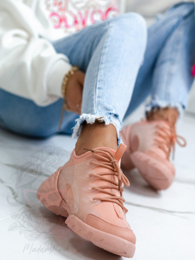Oryginalne buty damskie Madam Elsz to model stworzony, aby dopełniać Twoje sportowe stylizacje. Wykonane z miękkiej pianki neoprenowej w kolorze pudrowym i półprzezroczystej gumy. Model na elastycznej podeszwie wykonanej z gumy. Buty przodu sznurowane, dzięki czemu możemy dopasować je idealnie do swojej stopy. Wkładka dziurkowana zapewnia wentylację. Idealne spełnią się w wiosennych stylizacjach, musisz je mieć!