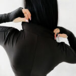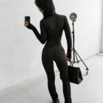 Wysokiej jakości materiał jest sprężysty, przyjemny w dotyku i idealnie dopasowuje się do ruchów. Kombinezon układa się jak druga skóra, nie krępuje i pozwala czuć się swobodnie przez cały dzień.