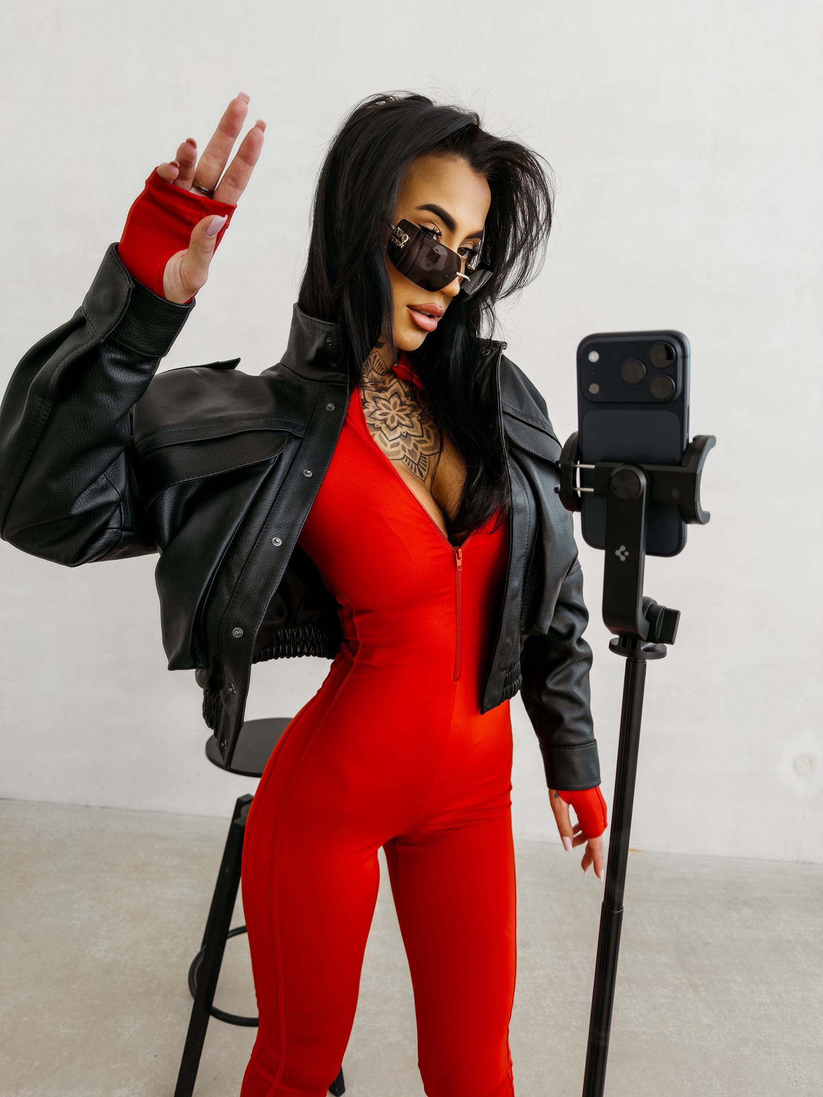 Wysokiej jakości materiał jest sprężysty, przyjemny w dotyku i idealnie dopasowuje się do ruchów. Kombinezon układa się jak druga skóra, nie krępuje i pozwala czuć się swobodnie przez cały dzień.