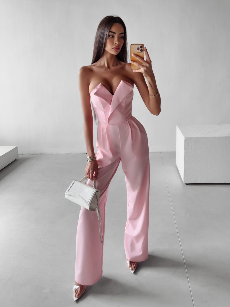 Efektowny kombinezon Diena od marki Ola Voga to rewelacyjne rozwiązanie na wyjątkowe okazje. Świetnie sprawdzi się zarówno na randkę czy wyjście na miasto z przyjaciółką i przy okazji innych wielkich wyjść. Gorsetowa góra zapinana na niewidoczny suwak, podkreśla talię i świetnie komponuje się z luźnym dołem. Spodnie z rozszerzanymi nogawkami idealnie sprawdzą się do wysokich szpilek. Jeśli lubisz oryginalne rozwiązania w stylizacji, to musisz go mieć!