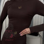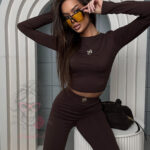 Komplet elastyczny – spodnie dzwony + top Millagro Suntis brązowy