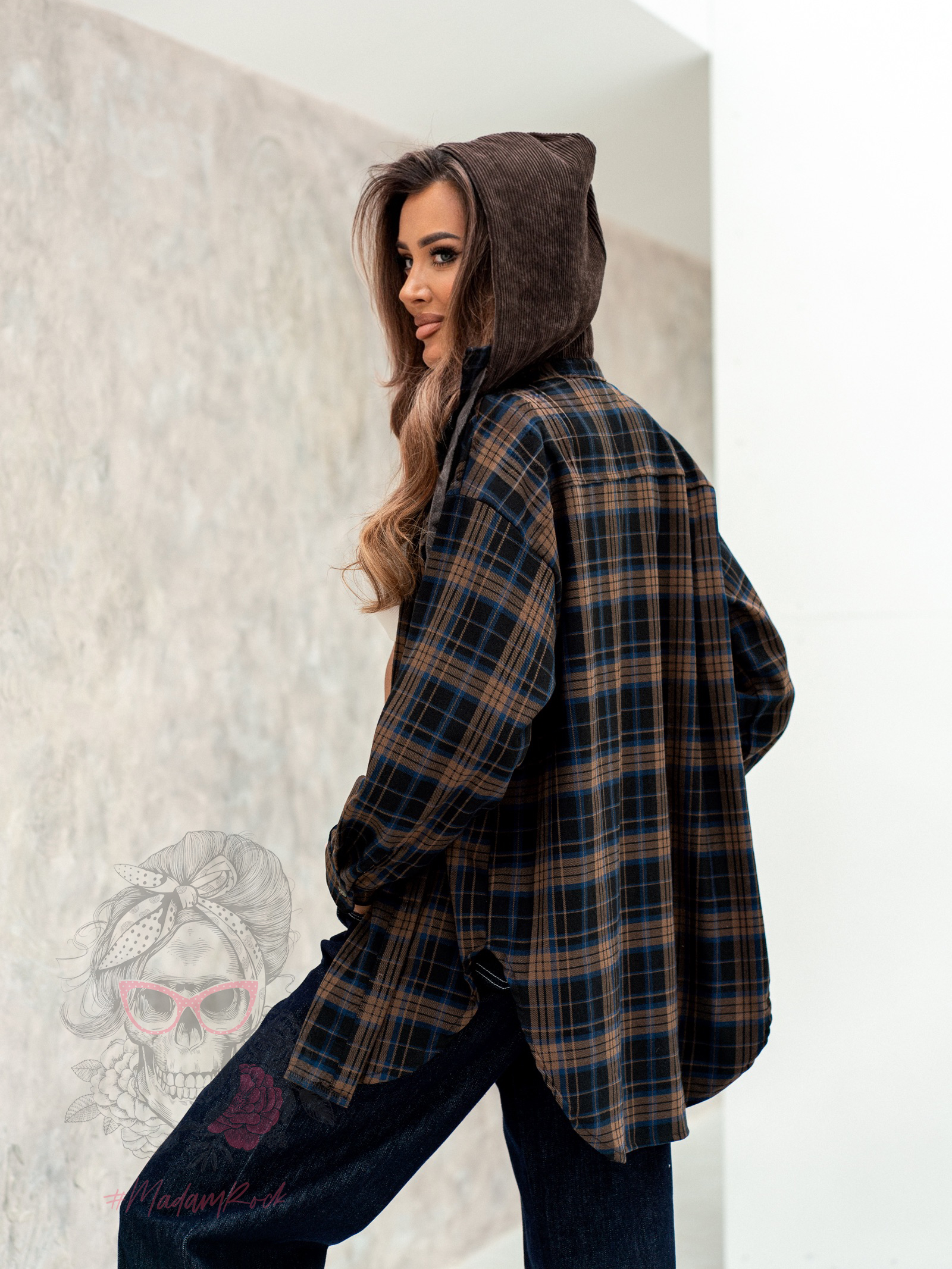 Koszula w kratę z kapturem Dagrasi to stylowy wybór dla osób ceniących wygodę i oryginalne rozwiązania. Wykonana z wysokogatunkowej bawełny, gwarantuje komfort noszenia i trwałość na lata. Model w brązowo-granatową kratę został uzupełniony o wyjątkowy detal – kaptur ze sztruksu w odcieniu brązu, który dodaje całości casualowego, streetwearowego charakteru. Koszula ma lekko oversizowy krój, zapinana jest na guziki i wyposażona w dwie praktyczne kieszonki z przodu, zamykane na klapy. To idealne połączenie klasycznego stylu z nowoczesnym akcentem, które sprawdzi się w codziennych i luźniejszych stylizacjach.