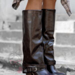 Kozaki damskie przed kolano Madam Zarela w stylu kowbojki to połączenie modnego designu i wygody. Wykonane z wysokiej jakości ekoskóry, z noskiem w szpic, wysmuklają nogę i podkreślają sylwetkę. Model zapinany na suwak po wewnętrznej stronie do łydki ułatwia zakładanie, a wnętrze wyłożone pianką zapewnia komfort noszenia bez dodatkowego ocieplenia.
