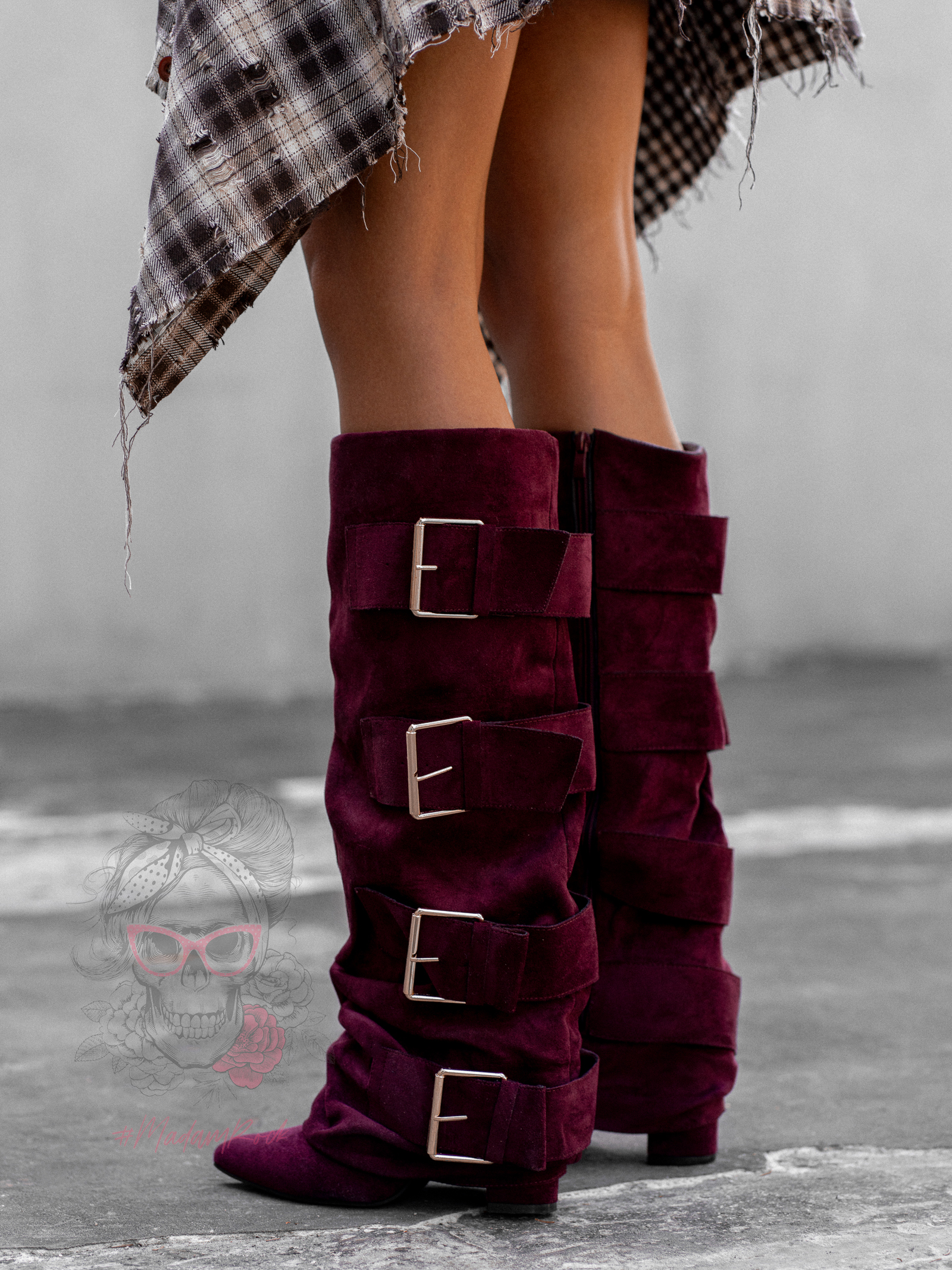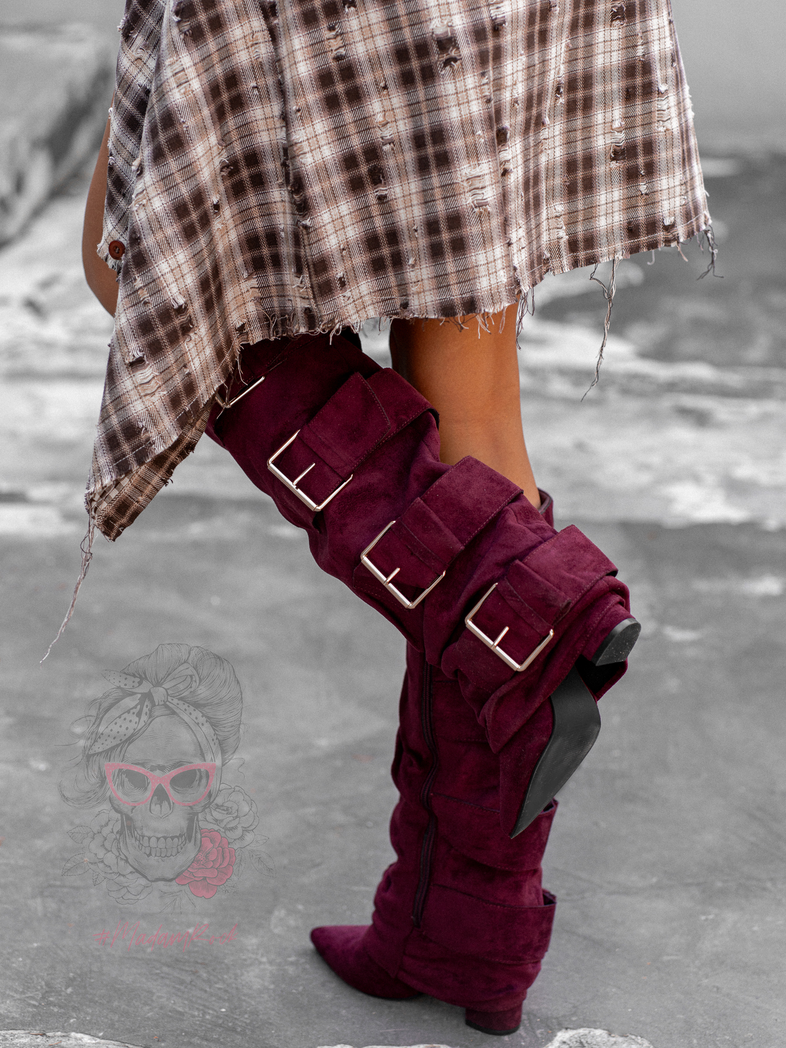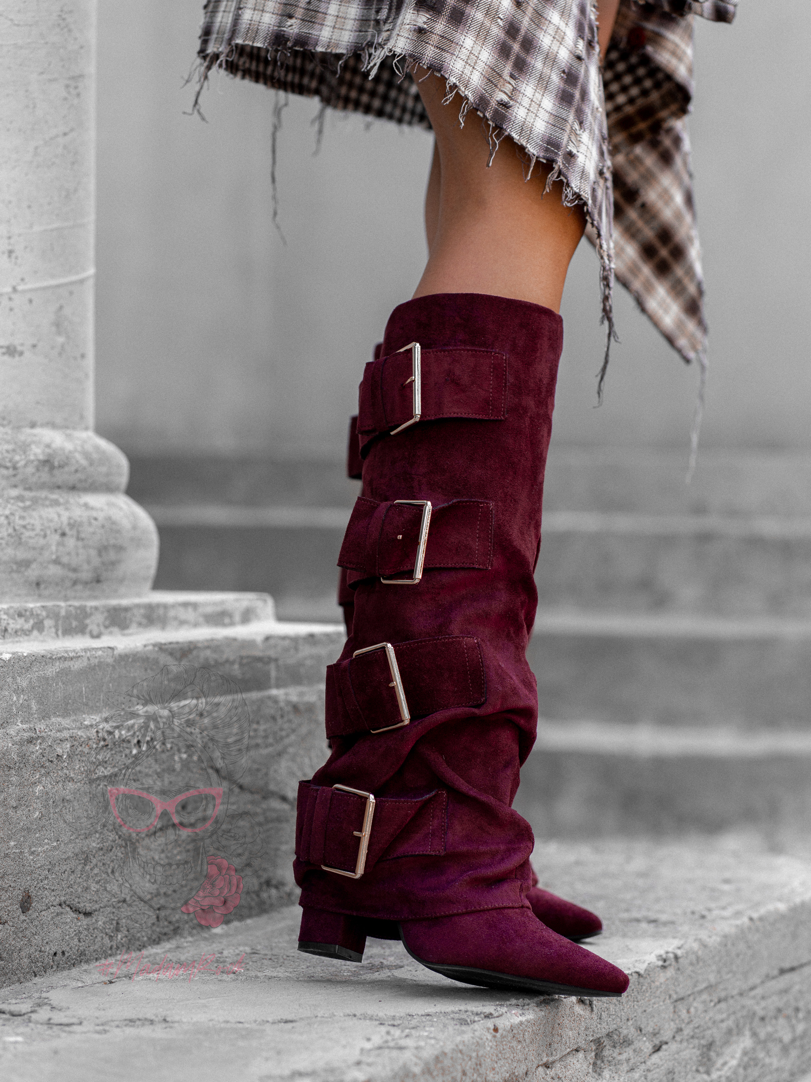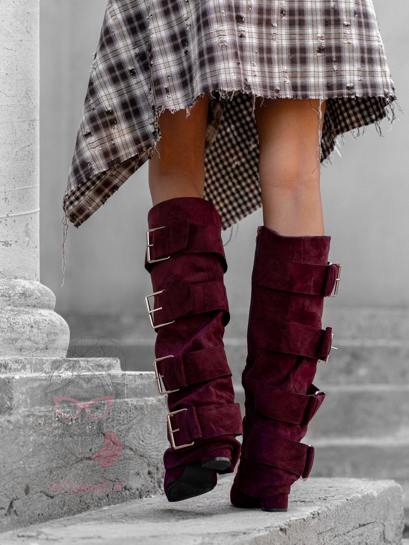 Kozaki Rock Sirro zostały ozdobione dużymi złotymi klamrami, które nadają butom elegancki, efektowny akcent. Idealne do codziennych i bardziej formalnych stylizacji, świetnie komponują się z sukienkami, spódnicami oraz spodniami, tworząc szykowny, modny look.