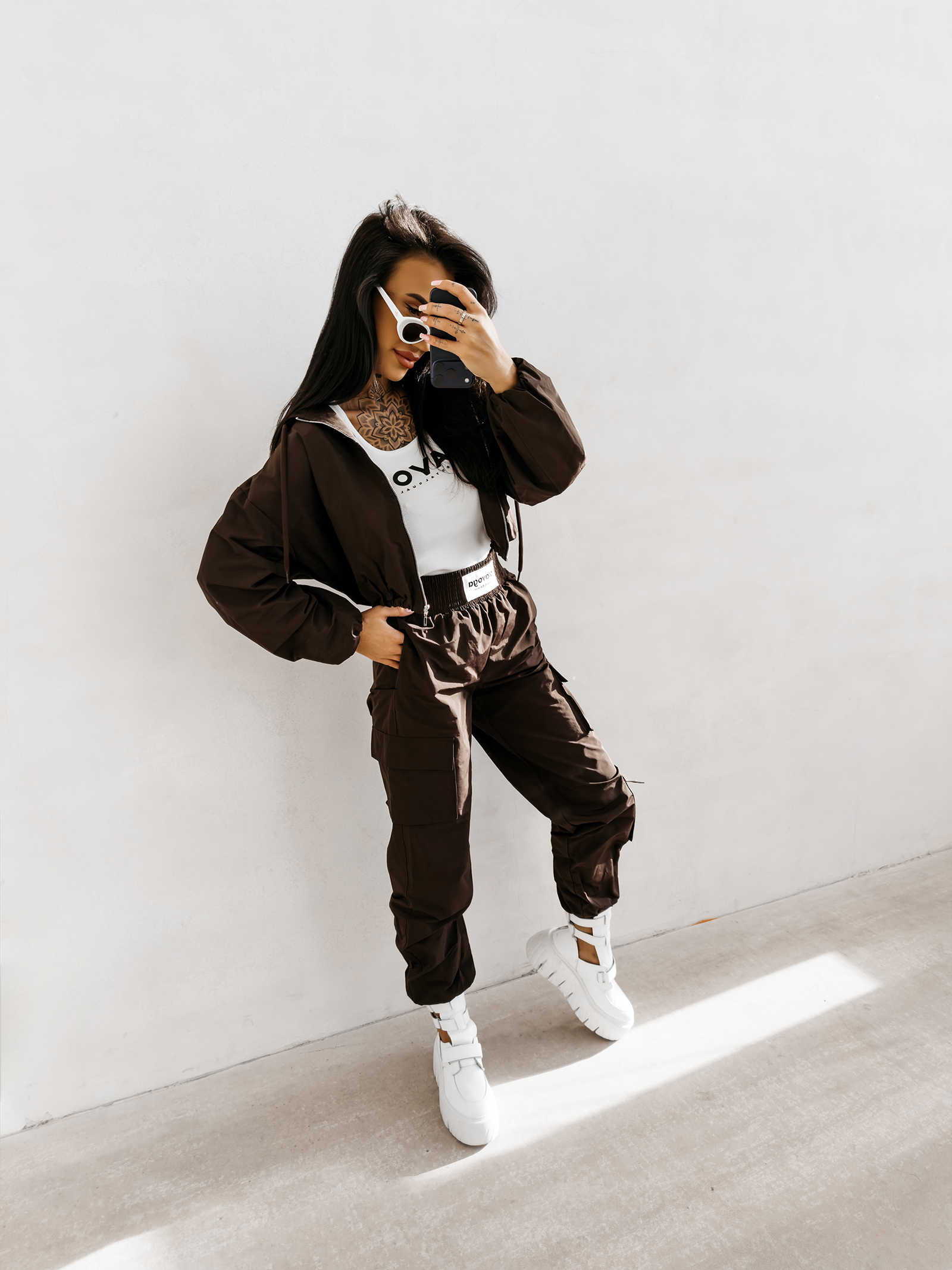Kurtka idealnie komponuje się ze spodniami z tej samej linii, tworząc nowoczesny, wygodny zestaw. To propozycja dla kobiet, które cenią styl, ale nie rezygnują z komfortu.