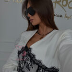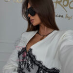 Strona głównaSklepKobietaMarynarka smokingowa z koronką Nocturne biała