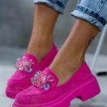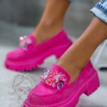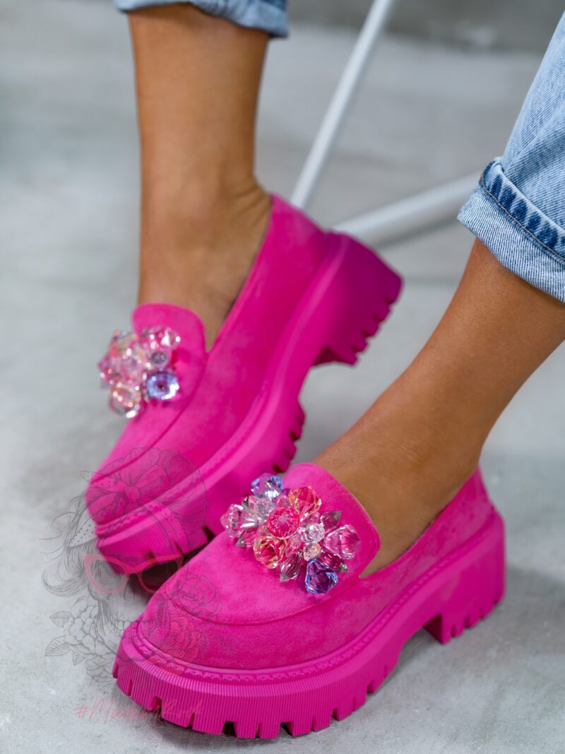 Mokasyny to niebywały hit, który zdecydowanie będzie królował w wiosennym sezonie. Nasz model Madam Alecta został wykonany z wysokiej jakości materiałów. Gumowa podeszwa z podwyższona platformą dopełnia całości. Wykonane z zamszu ekologicznego w kilku wersjach kolorystycznych, aby każda z Nas mogła znaleźć coś dla siebie. Mokasyny ozdobione opalizującymi kamieniami. To must have w każdej garderobie!