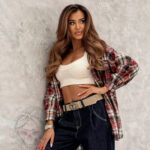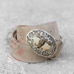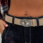 Stylowy pasek damski wykonany z wysokiej jakości naturalnego zamszu w klasycznym brązowym kolorze. Wyposażony w dużą, ozdobną klamrę z subtelnym akcentem western, która nadaje całości wyjątkowego charakteru i świetnie podkreśla talię. Pasek doskonale sprawdzi się zarówno w codziennych stylizacjach z jeansami i koszulą, jak i w bardziej eleganckich zestawach, dodając im modowego wyrazu.