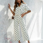 Postaw na odważny i modny look z jeansami BILLIS w kroju Wide Leg, wykonanymi z wysokogatunkowego, lekko elastycznego materiału. W śmietanowym kolorze w duże, czarne grochy, przyciągają wzrok i nadają stylizacji niepowtarzalnego charakteru. Wysoki stan pięknie podkreśla talię, a lekko rozszerzane nogawki z dekoracyjnymi przeszyciami dodają modnego, nowoczesnego akcentu.