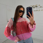 Sweter kolorowy z falbankami przy mankietach Sossis różowy/ czerwony