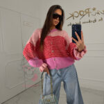 Strona głównaSklepKobietaSweter kolorowy z falbankami przy mankietach Sossis różowy/ czerwony