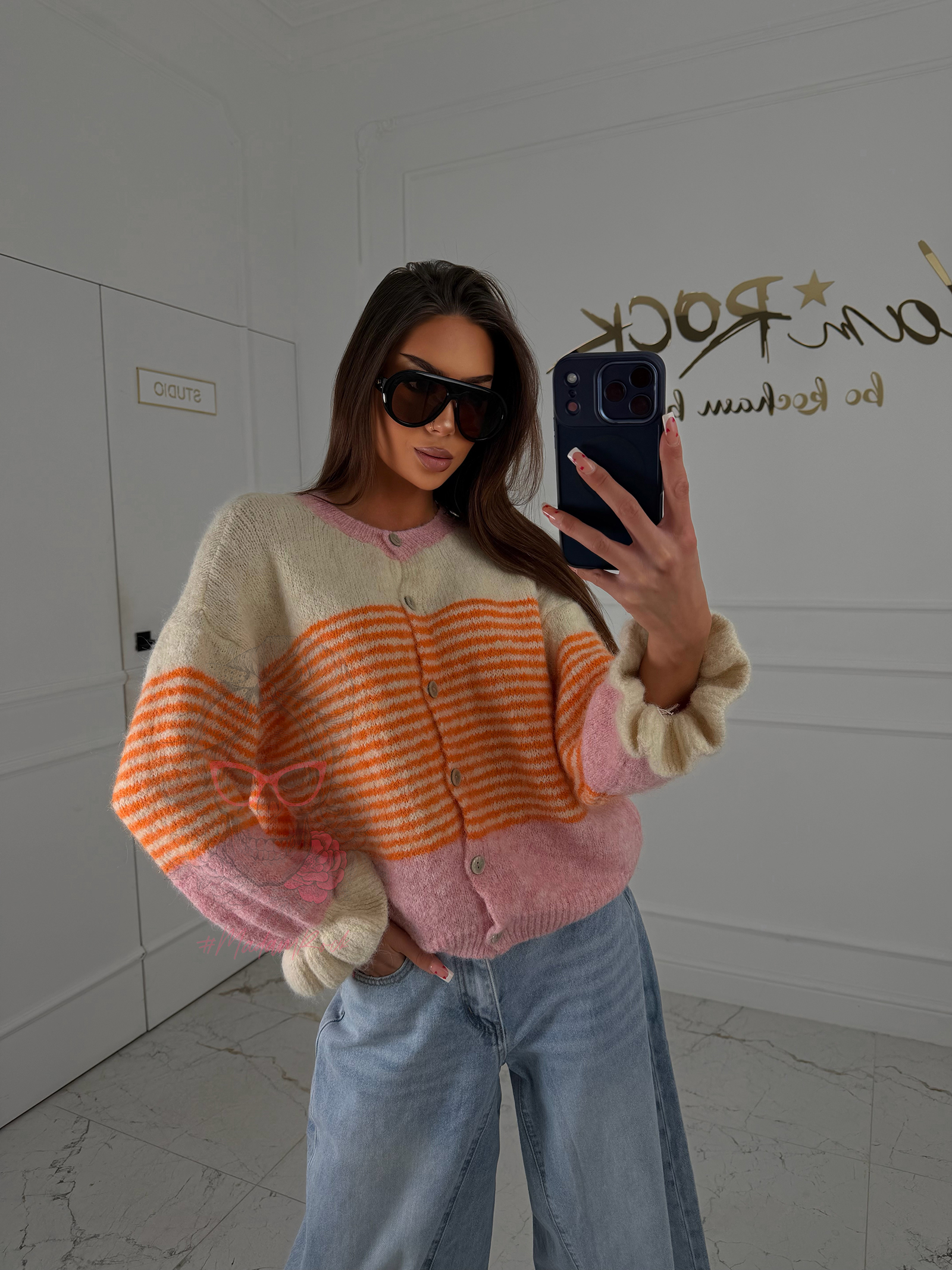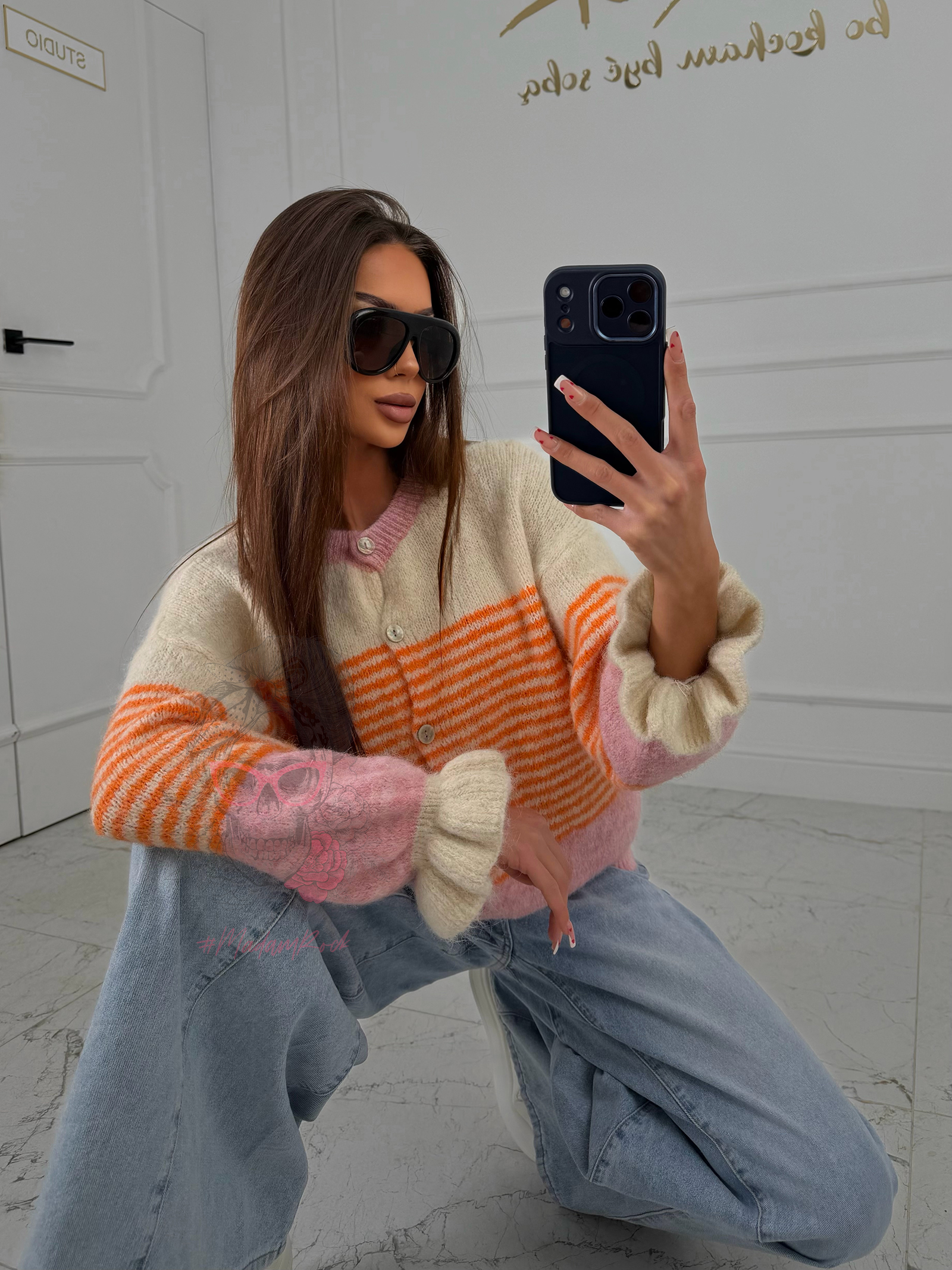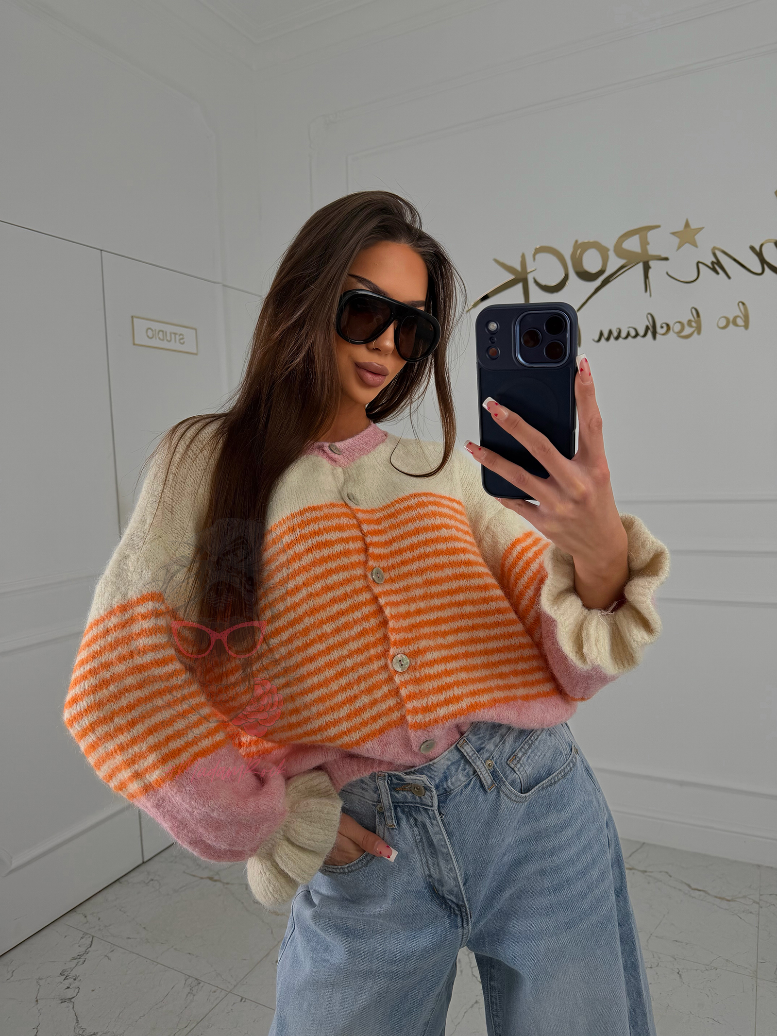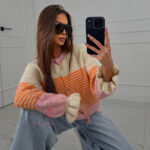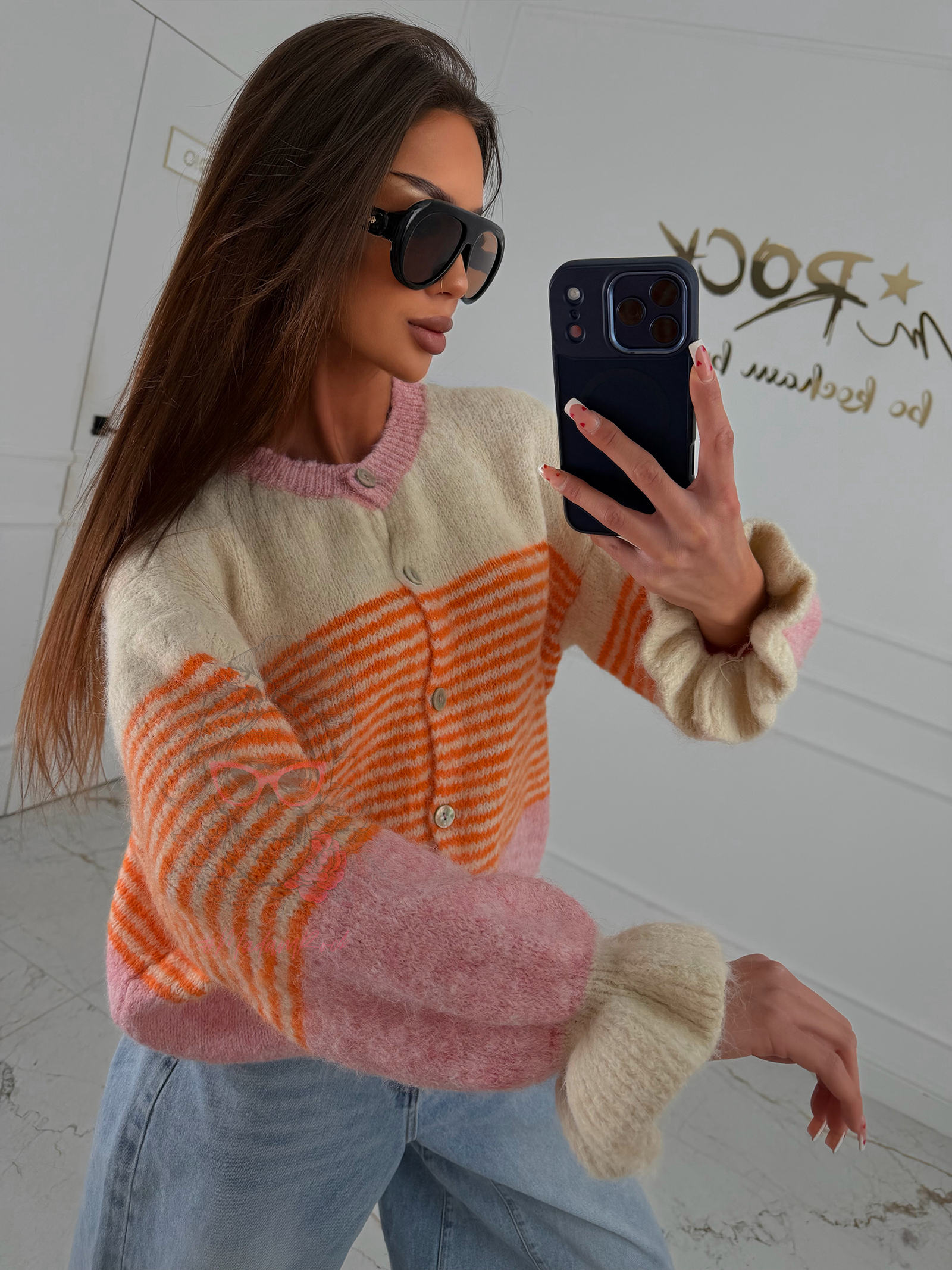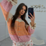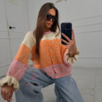 Strona głównaSklepKobietaSweter kolorowy z falbankami przy mankietach Sossis różowy/ pomarańczowy