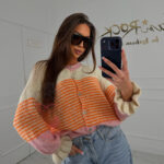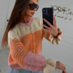 Sweter kolorowy z falbankami przy mankietach Sossis