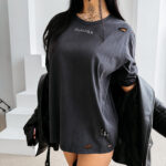 Wydłużona linia optycznie wysmukla, pozwala czuć się pewnie i daje wiele możliwości stylizacji. Możesz nosić go jako klasyczną koszulkę, ale również jako krótką sukienkę w sportowym wydaniu.