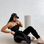 - Kontrastowe lampasy po bokach optycznie modelują sylwetkę i dodają całości nowoczesnego, sportowego sznytu w stylu luksusowym.