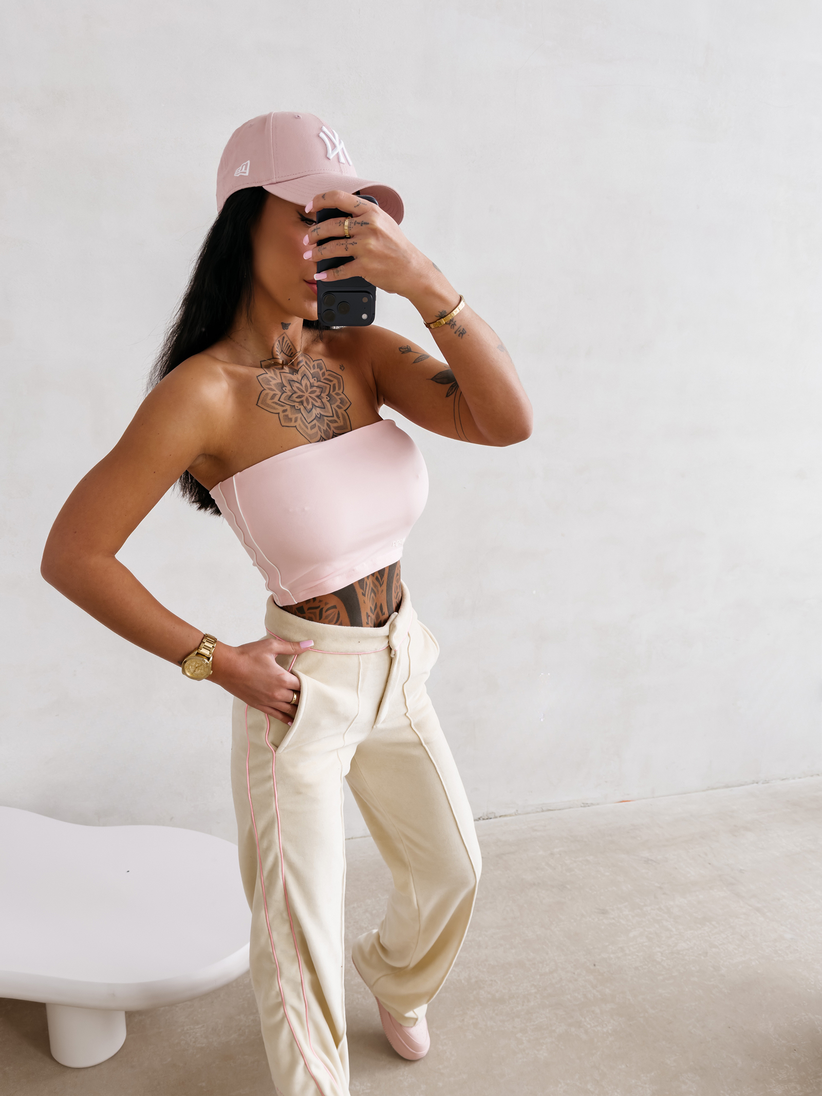 - Minimalistyczna forma bez ramiączek pozwala na równomierne opalanie ramion i daje ogromne możliwości w doborze biżuterii oraz dodatków.