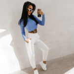 Krótki fason pięknie eksponuje talię, podkreśla proporcje i doskonale współgra zarówno ze spodniami z wysokim stanem, jak i dopasowanymi spódnicami. To baza, która daje ogromne możliwości stylizacyjne.