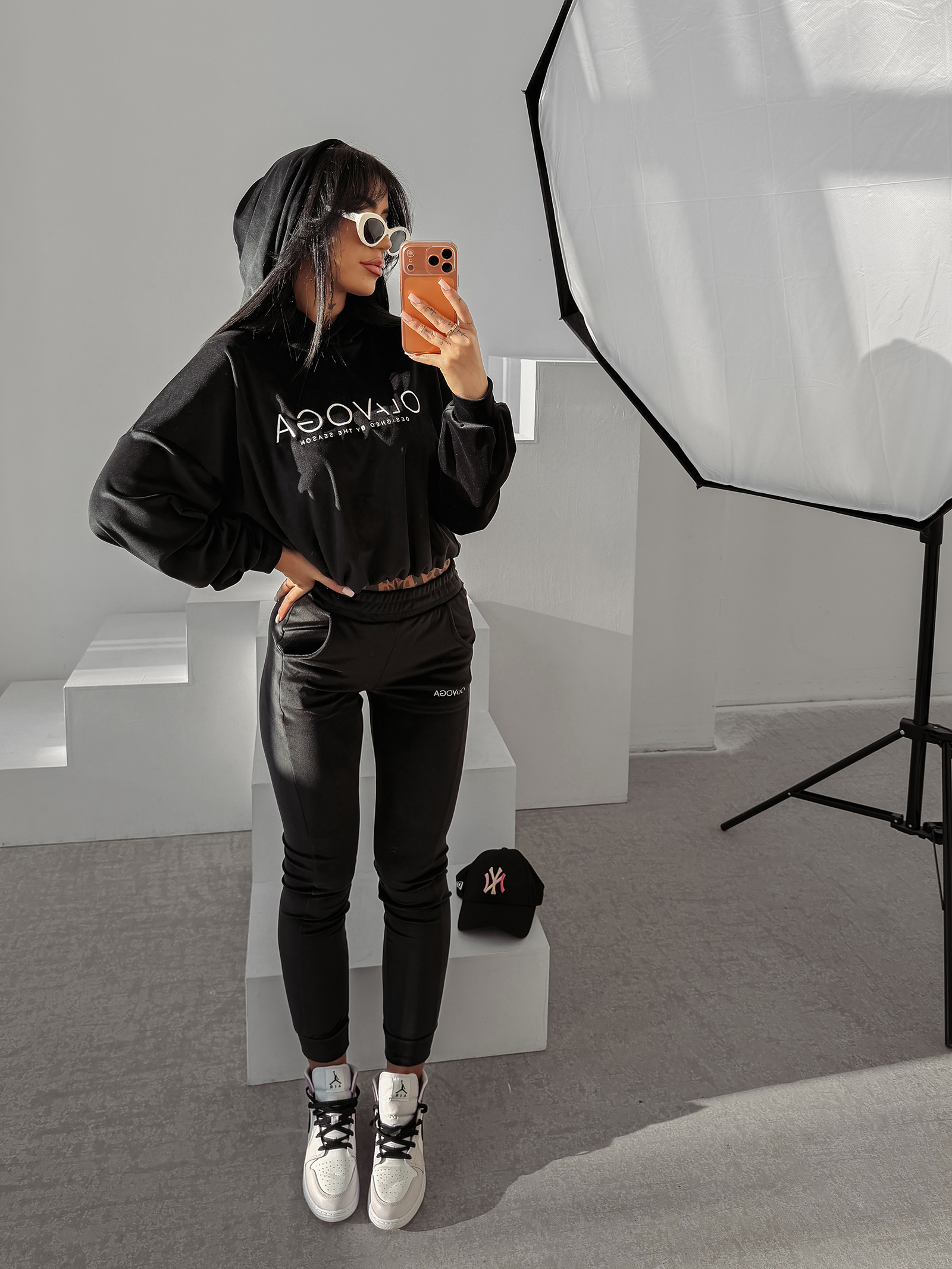 – subtelne haftowane logo OLAVOGA z przodu i na nogawce