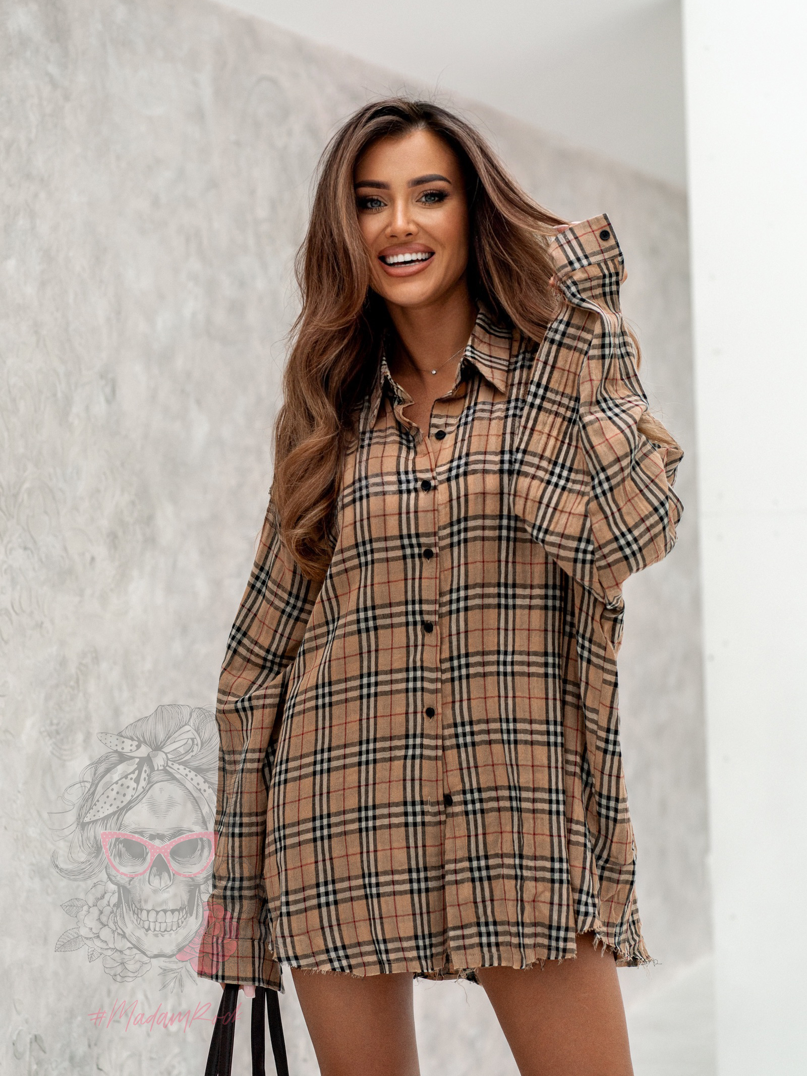 Koszula w kratę Burrers w odcieniu jasnokarmelowym to modna propozycja dla osób ceniących casualowy styl z nutą oryginalności. Wykonana z lekkiego materiału, świetnie sprawdza się w codziennych stylizacjach, zapewniając swobodę i komfort noszenia. Klasyczny fason z delikatnym oversize’em nadaje jej nowoczesnego charakteru, a zapinanie na guziki podkreśla uniwersalny design. Zarówno góra, jak i dół koszuli wykończone zostały w surowym stylu z postrzępieniami, co nadaje całości lekko rockowego akcentu. Wewnętrzne podszycie w grubszą kratkę stanowi ciekawy kontrast i dodaje koszuli wyjątkowego charakteru.