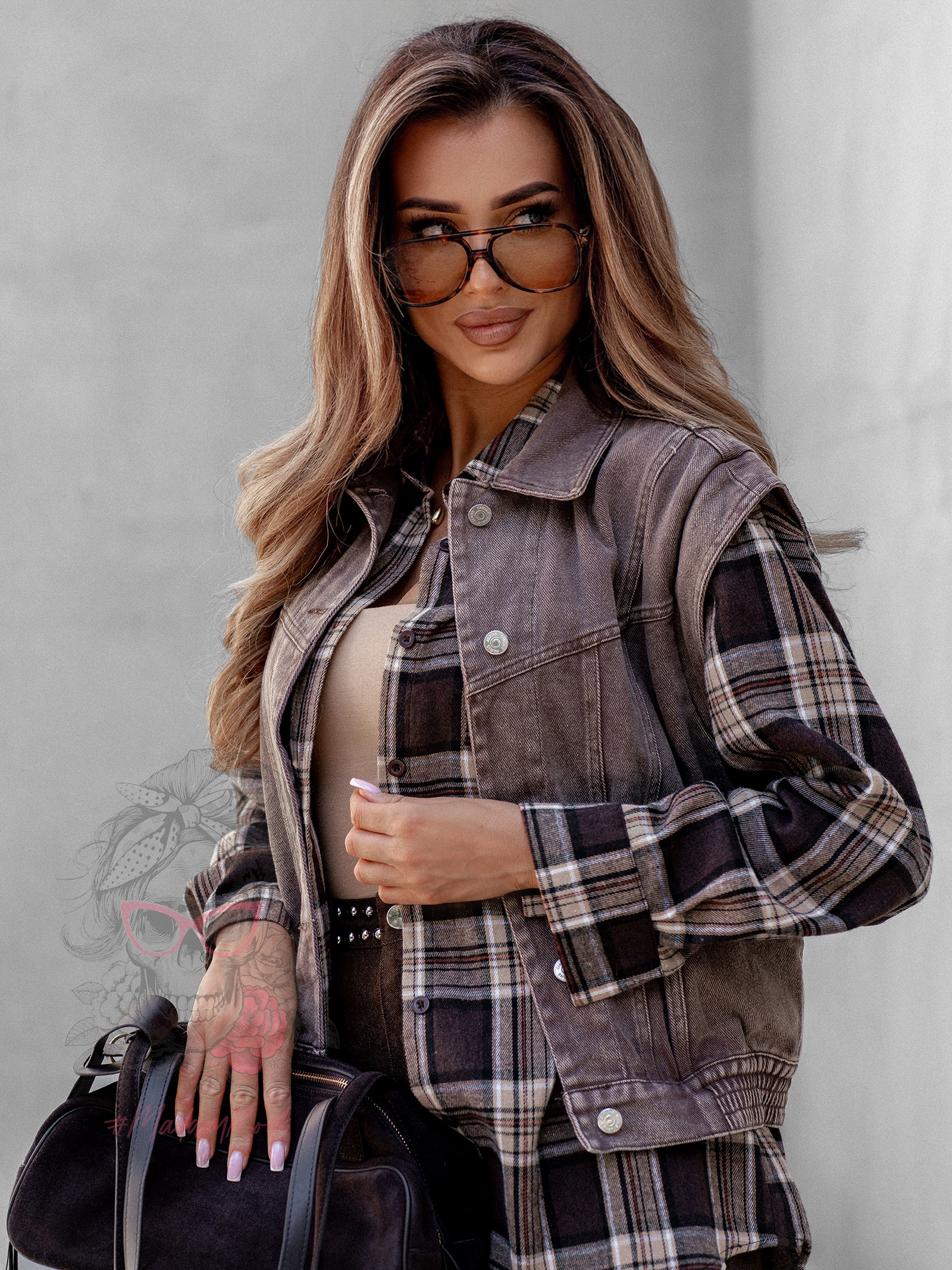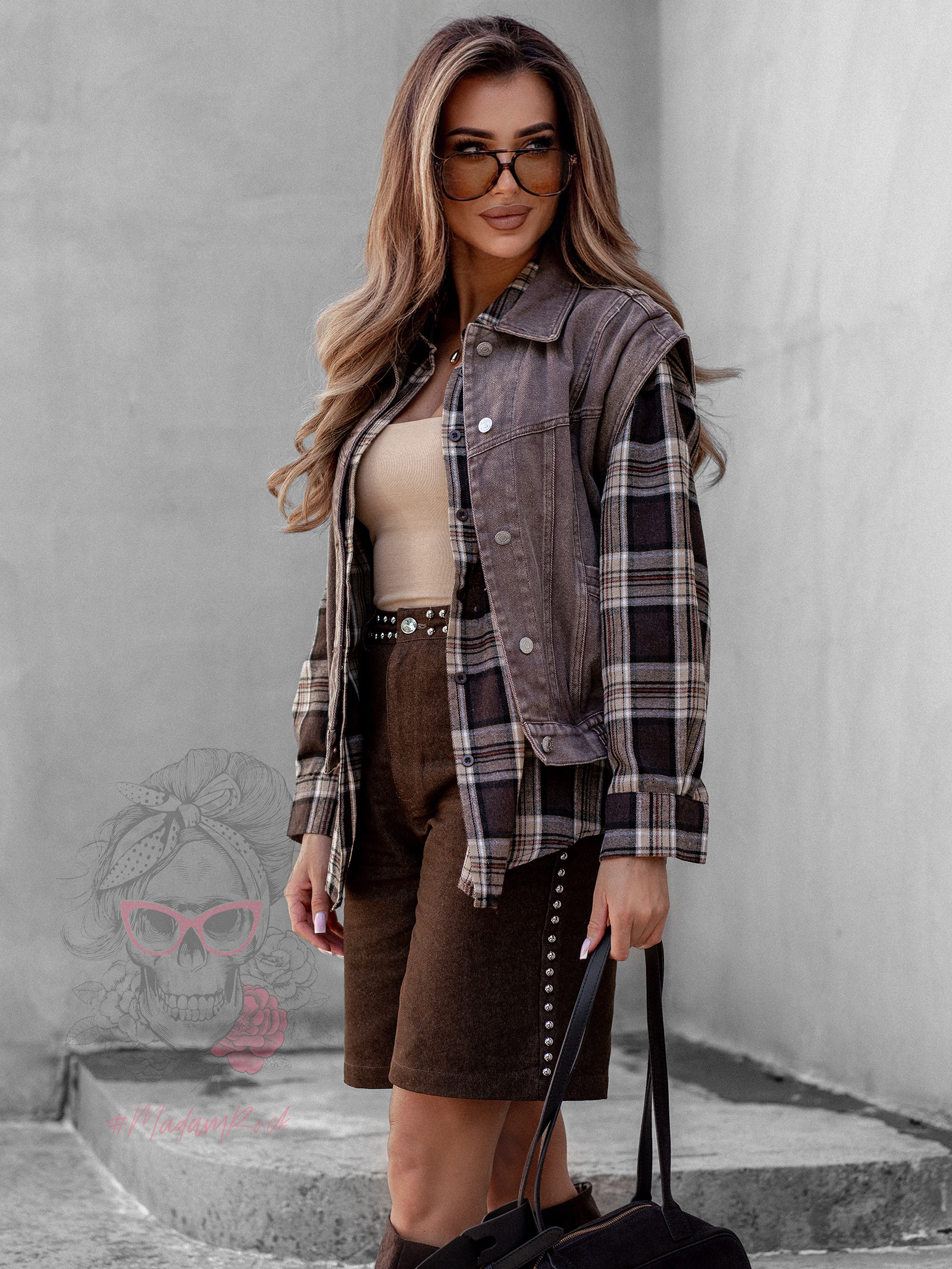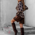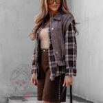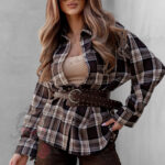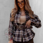 Koszula w kratę Awuro to klasyczny model flanelowy w odcieniach beżu i brązu, który łączy wygodę z ponadczasowym stylem. Wykonana z miękkiej flaneli, posiada kołnierzyk, kieszonkę z przodu oraz pełne zapięcie na guziki. Jej wyjątkowym akcentem jest szeroki pasek z ekoskóry w zestawie – ozdobiony złotą klamrą z efektem postarzenia, który podkreśla talię i dodaje koszuli eleganckiego charakteru.