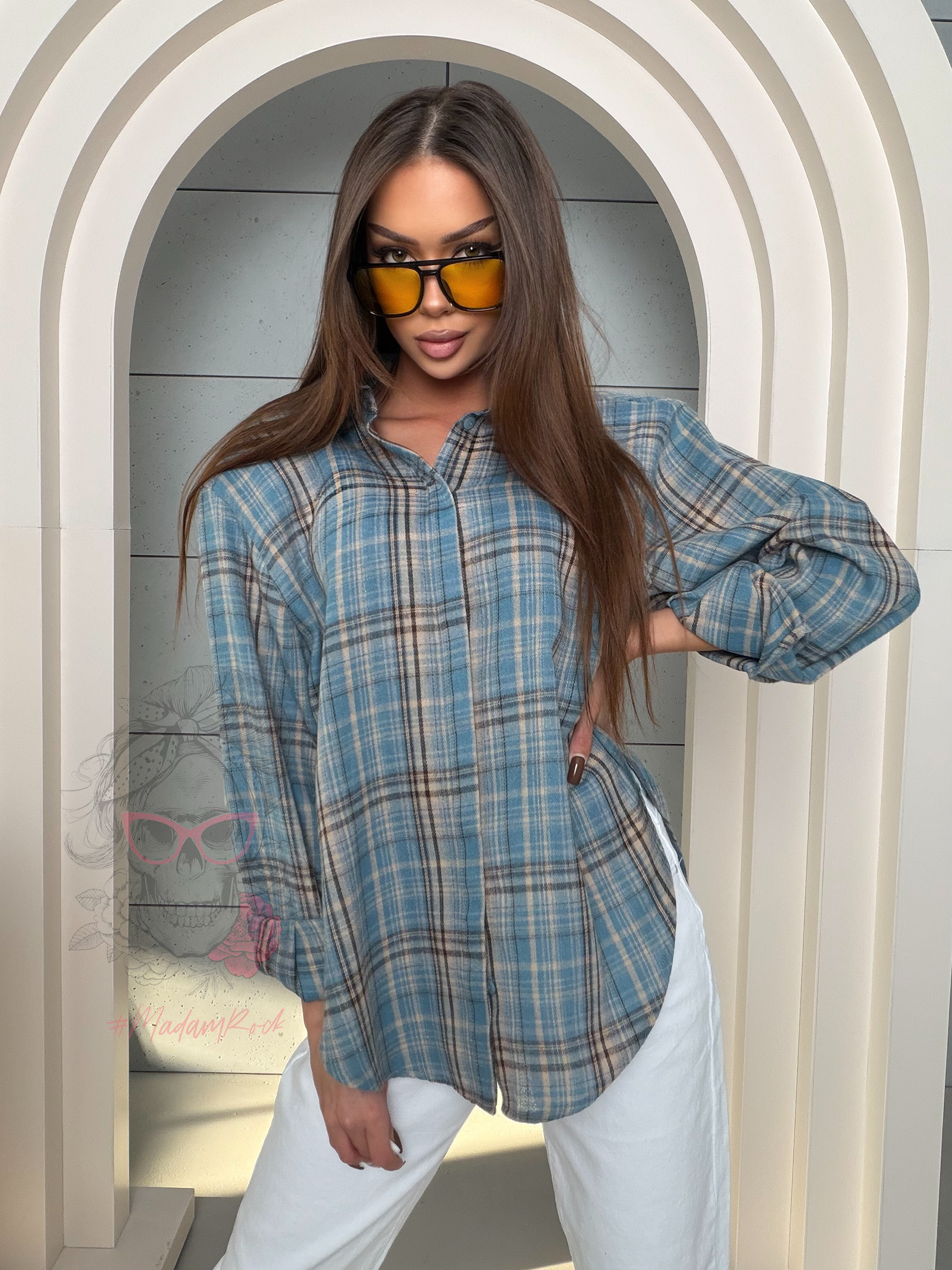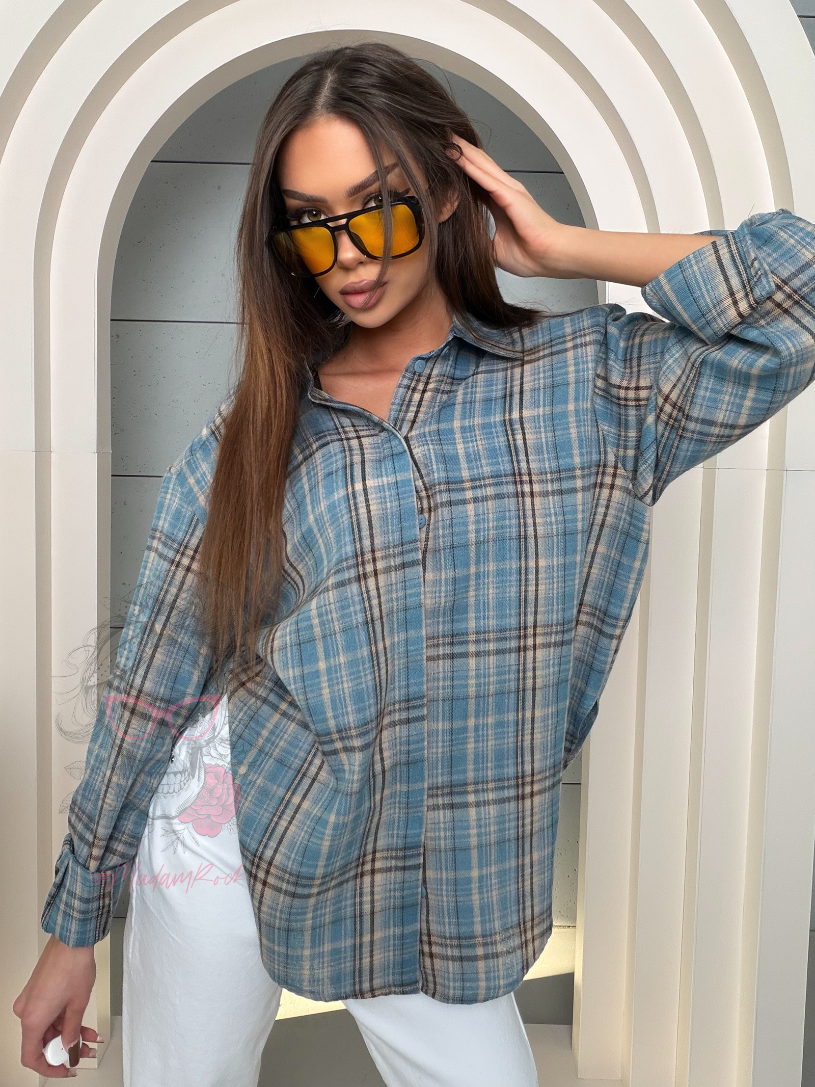 Model oparty jest na klasycznym kroju koszuli, który pięknie układa się na sylwetce i zapewnia komfort noszenia. Poduszki na ramionach stanowią wyrazisty, nowoczesny detal – podkreślają linię ramion, nadają sylwetce struktury i wprowadzają modowy, lekko elegancki charakter.