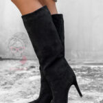 Kozaki klasyczne Madam Colette to elegancka propozycja dla kobiet, które cenią sobie szyk i ponadczasowy styl. Wykonane z wysokiej jakości zamszu ekologicznego, prezentują się wyjątkowo kobieco i stylowo. Model sięgający przed kolano został wyposażony w smukły obcas typu szpilka oraz nosek w szpic, co optycznie wydłuża nogi i dodaje sylwetce lekkości.