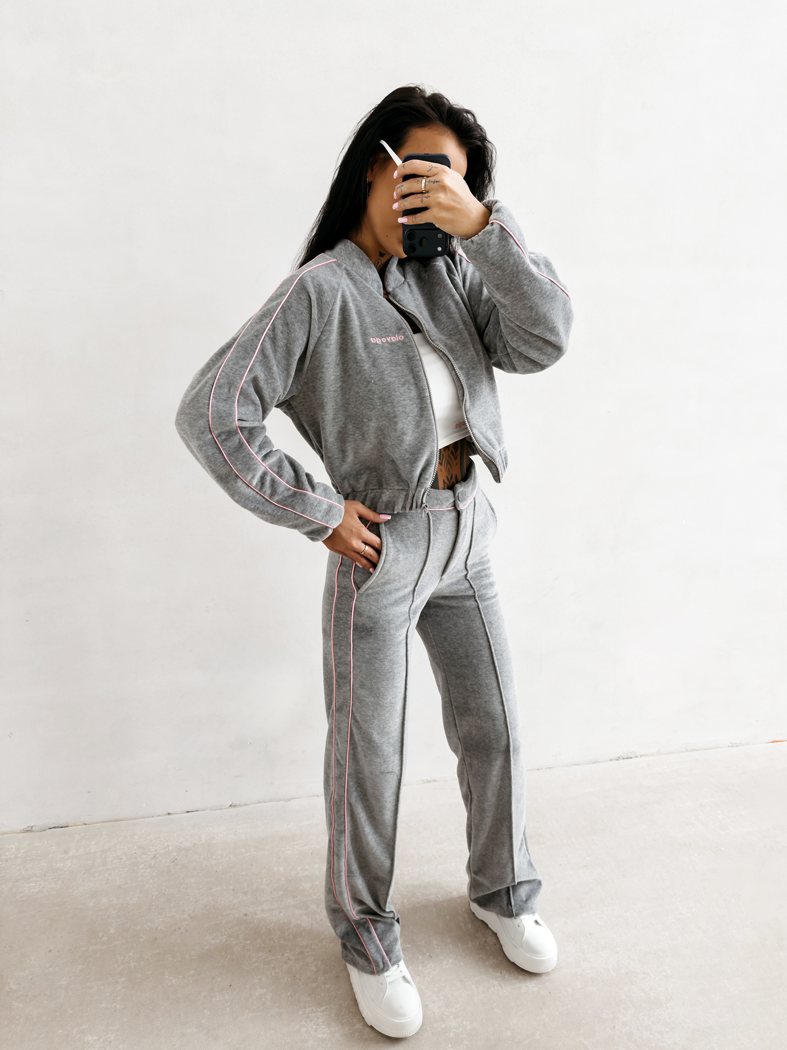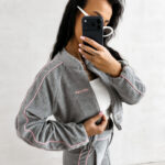Poczucie swobody jest niezwykle ważne, dlatego model ELVIA został wyposażony w płynnie działający suwak ułatwiający codzienne użytkowanie. Długi rękaw oraz miękka stójka chronią przed lekkim chłodem, zapewniając Ci przyjemne ciepło podczas spacerów. Z pewnością docenisz fakt, że ta bomberka tworzy idealny komplet z topem LEYA oraz spodniami VELIN. Dzięki takiemu połączeniu zyskujesz gotowy, spójny look, który sprawdzi się zarówno na kawę, jak i na wyjazd. Aksamitna dzianina jest trwała i zachowuje swoją strukturę nawet po wielu praniach, co czyni ją wyborem na lata. Wybierz jakość premium, która realnie wpływa na Twoje samopoczucie i dodaje pewności siebie w każdej sytuacji. Twoja garderoba zasługuje na tak wyjątkowy element, który łączy w sobie sportowy luz oraz luksusowe wykończenie.