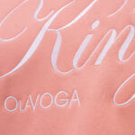 Subtelny haft z logo OLAVOGA na przodzie nadaje całości eleganckiego minimalizmu. Delikatny napis „you are mine” umieszczony na rękawie wprowadza emocjonalny akcent, natomiast ozdobny haft „Her King OLAVOGA” na plecach staje się wyrazistym, przyciągającym uwagę detalem. To bluza, która opowiada historię i wyróżnia się w tłumie.