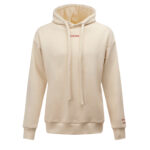 Obniżona linia ramion wzmacnia modowy efekt oversize, a długie rękawy z elastycznymi ściągaczami stabilizują fason. Dół bluzy również został wykończony ściągaczem, co pozwala zachować proporcje sylwetki mimo luźnego kroju. Kaptur dopełnia całość, wprowadzając casualowy, miejski klimat.