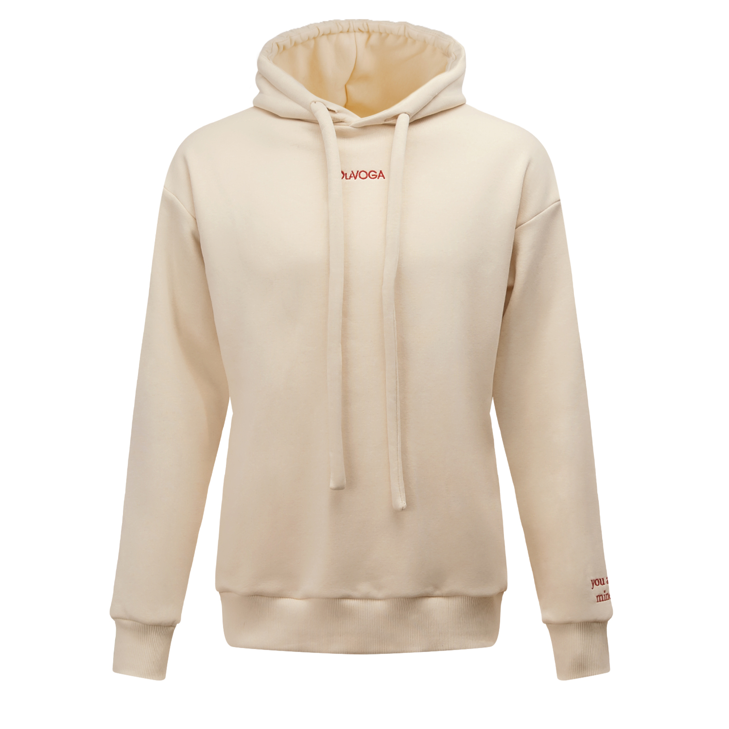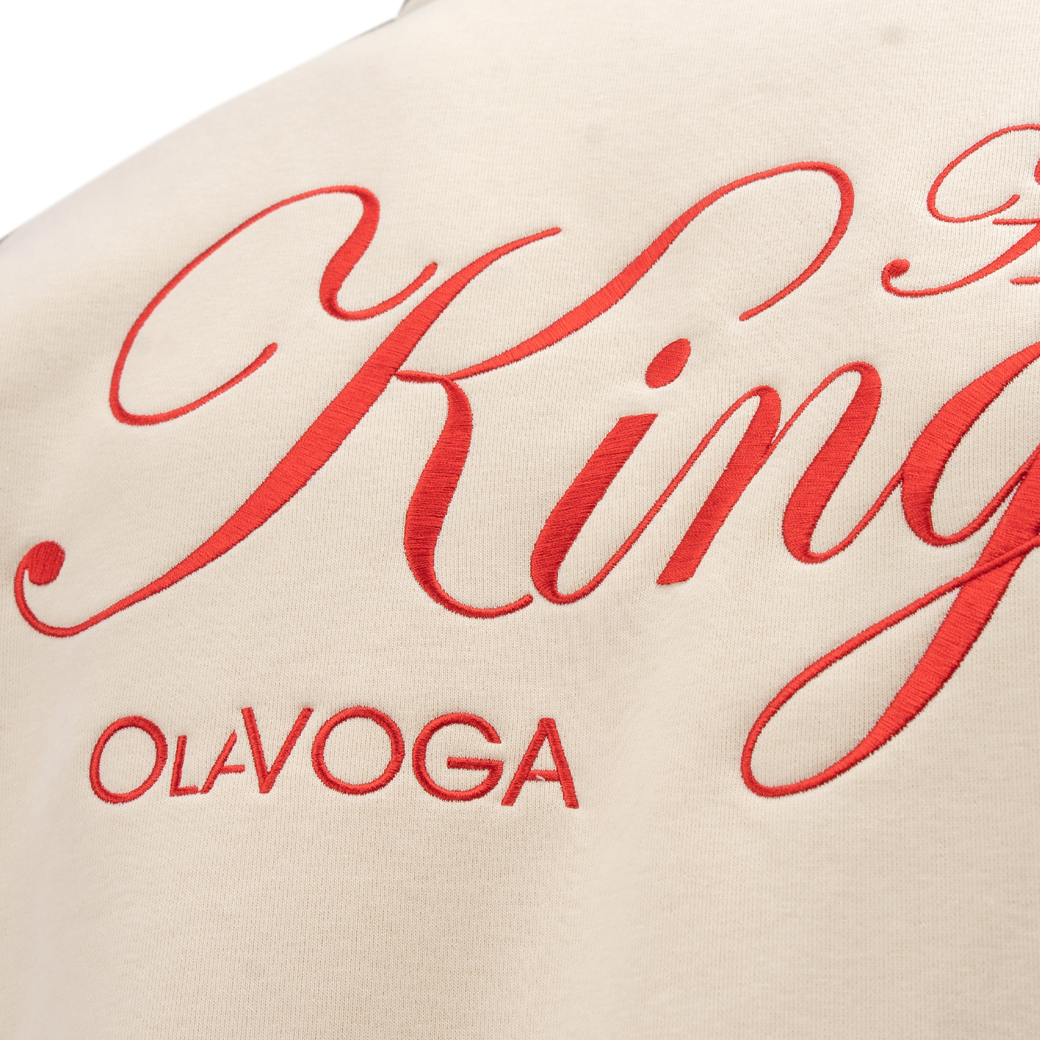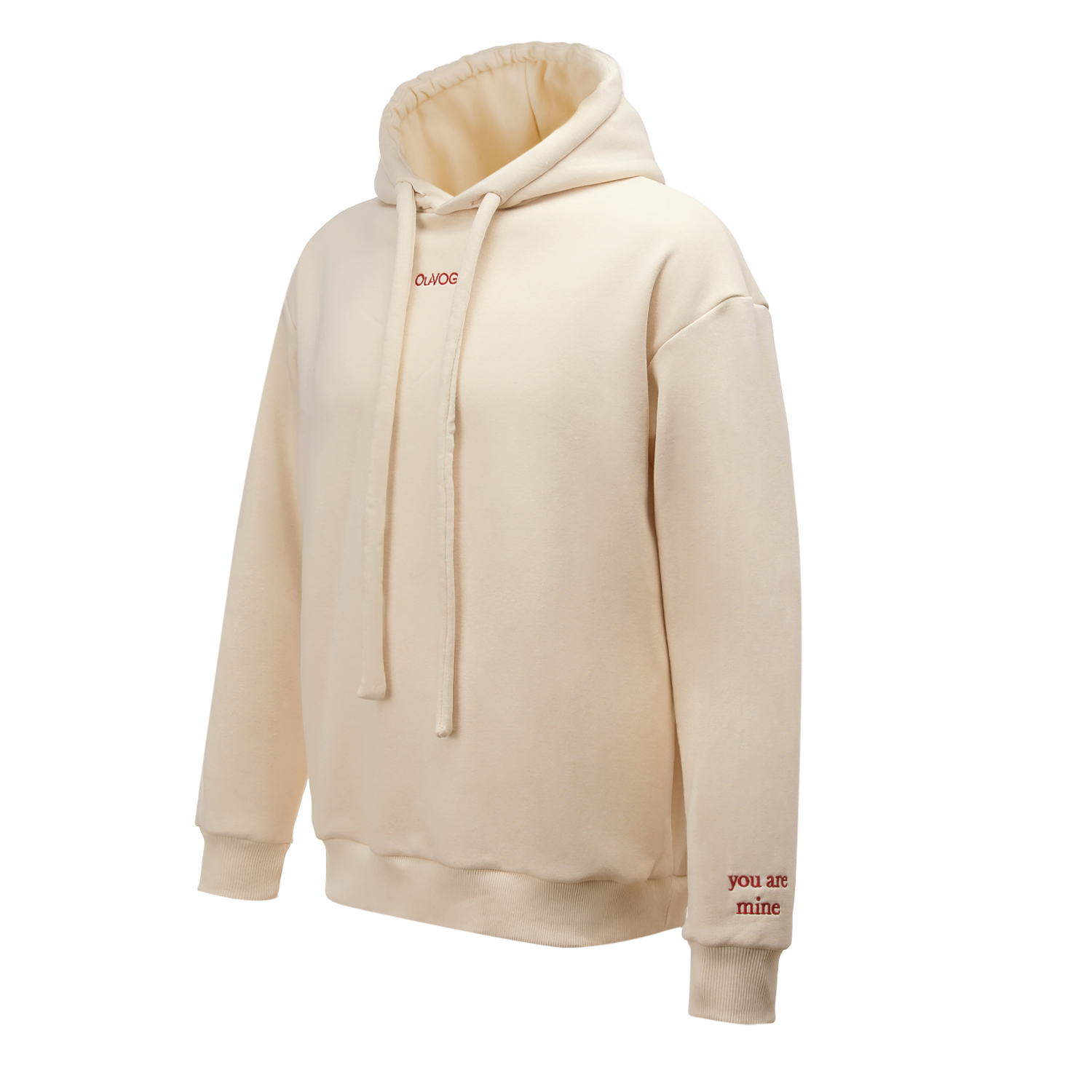 Subtelny haft z logo OLAVOGA na przodzie nadaje całości eleganckiego minimalizmu. Delikatny napis „you are mine” umieszczony na rękawie wprowadza emocjonalny akcent, natomiast ozdobny haft „Her King OLAVOGA” na plecach staje się wyrazistym, przyciągającym uwagę detalem. To bluza, która opowiada historię i wyróżnia się w tłumie.